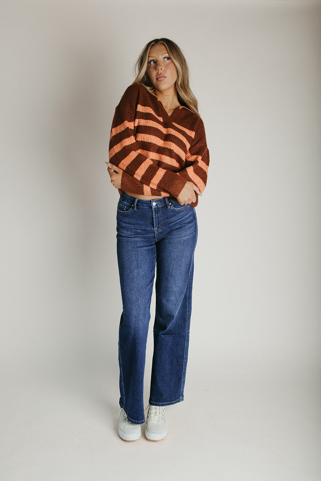 The Samoza Striped Collared Sweater in Brick + Terracotta