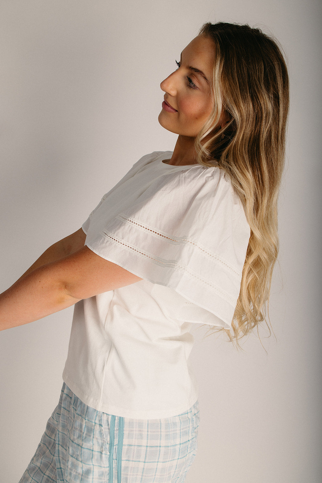 Elevate your everyday style with The Berger Wing Sleeve Blouse—a playful twist on a classic! Those charming wing sleeves add instant personality and movement, while the soft ivory hue keeps things effortlessly chic. Perfect for dressing up or down, it's the kind of piece that makes you smile every time you put it on.