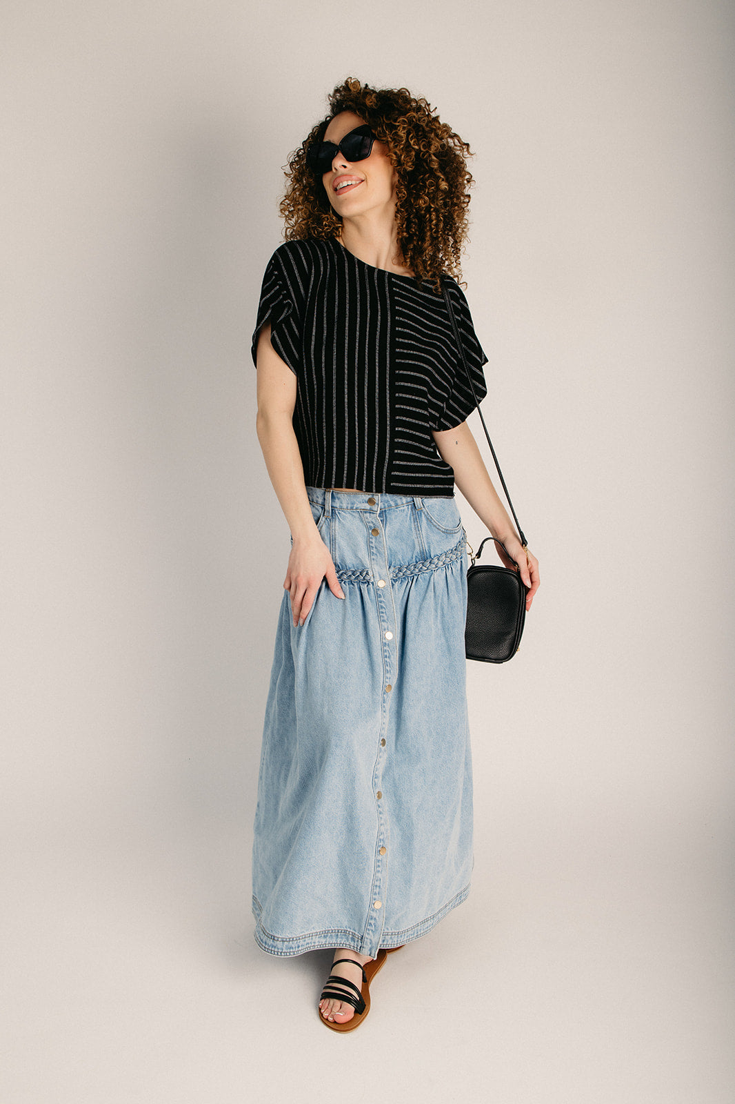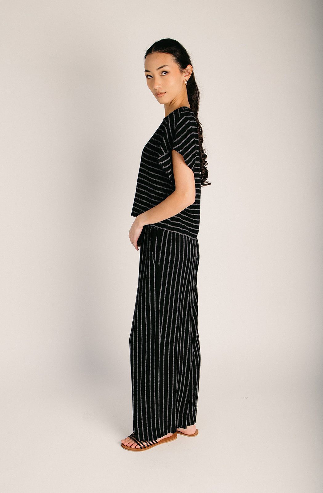 Stripes, meet sophistication. The Collin Dolman Blouse in Black is your new go-to for looking put-together without trying too hard. Classic black and white stripes never go out of style—they're the kind of pattern that plays well with literally everything in your closet. Slip into this beauty and feel the difference. Whether you're dressing it up with a blazer or keeping it casual with denim, the Collin Dolman is the striped blouse that actually earns its place in your rotation. Pairs perfectly with The Jamie Striped Wide Leg Pant in Black!