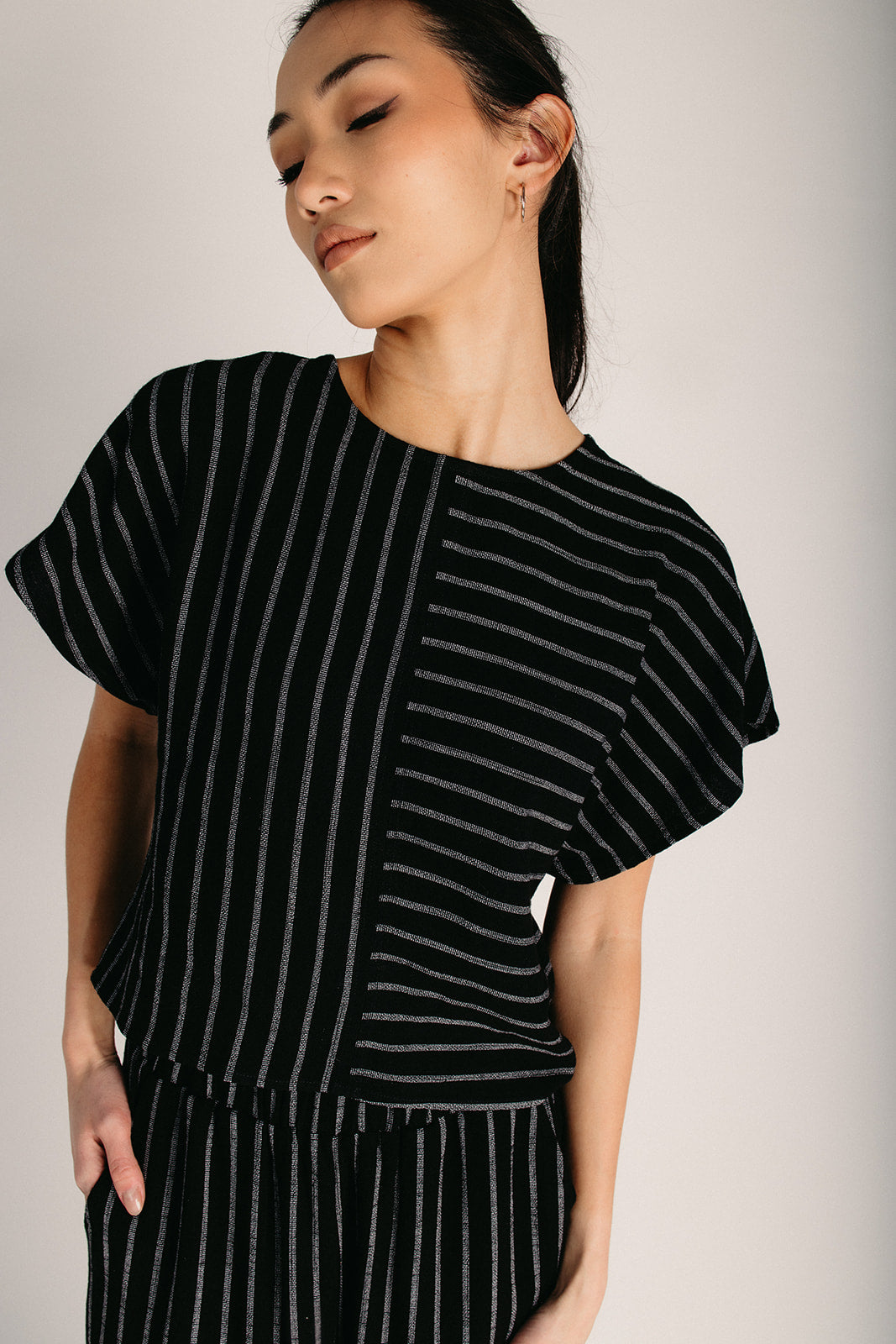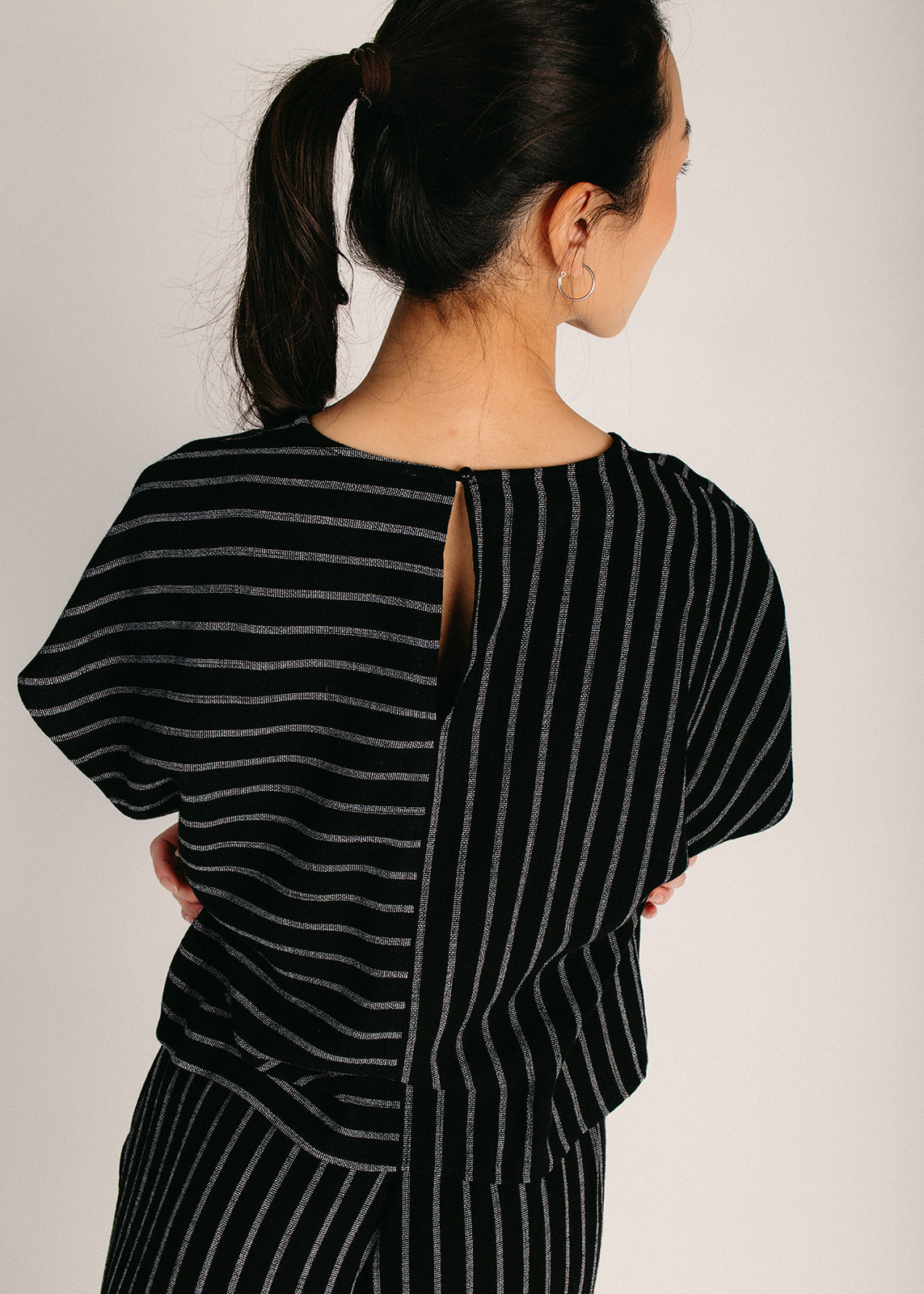 The Collin Dolman Striped Blouse in Black