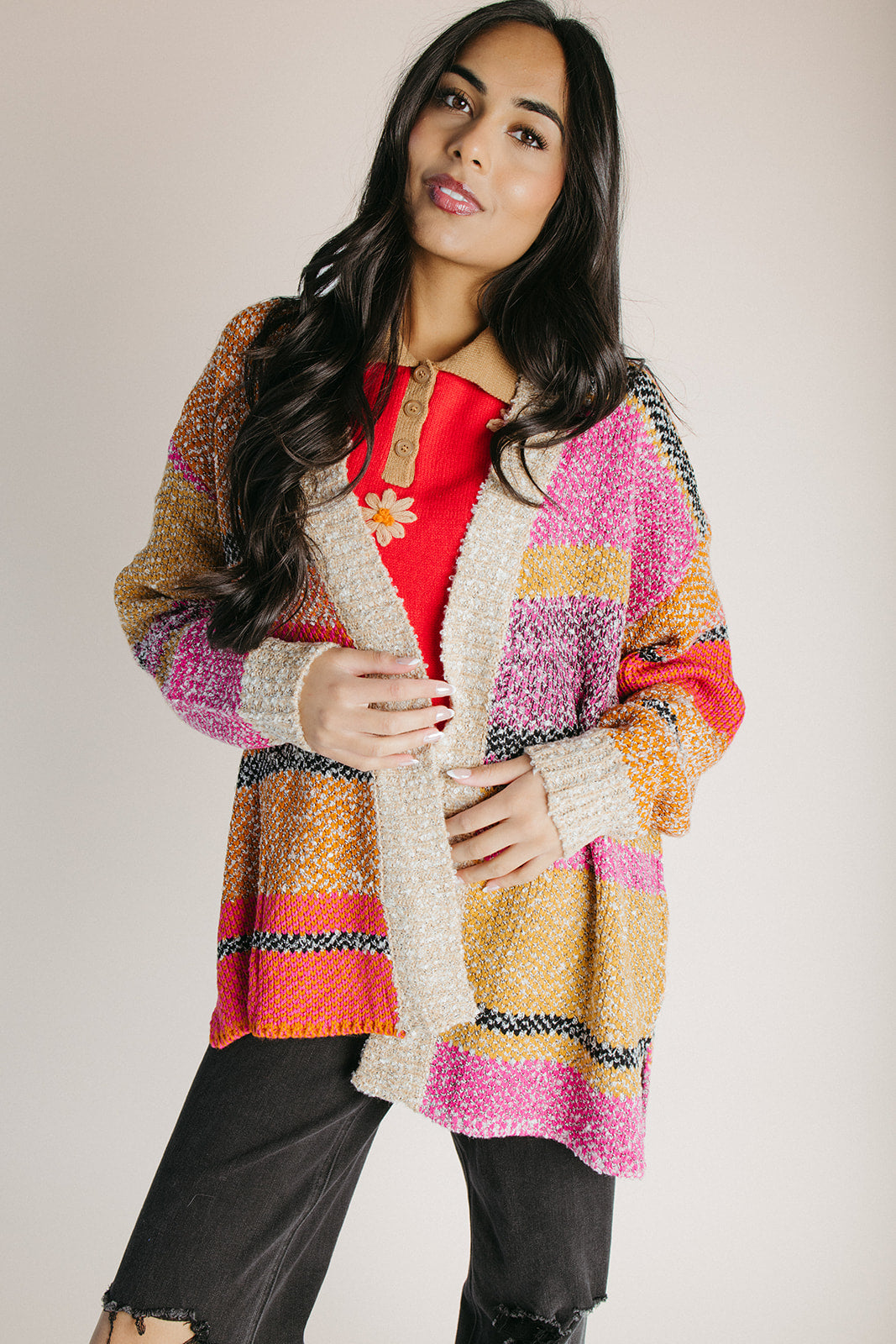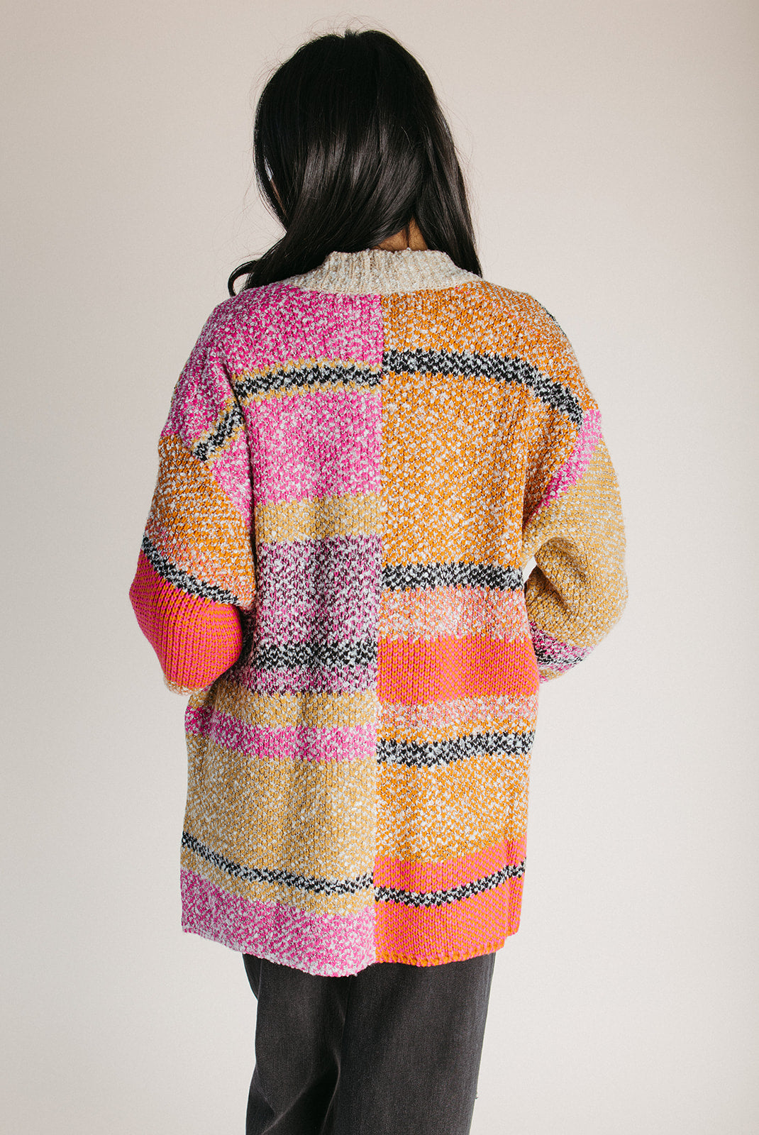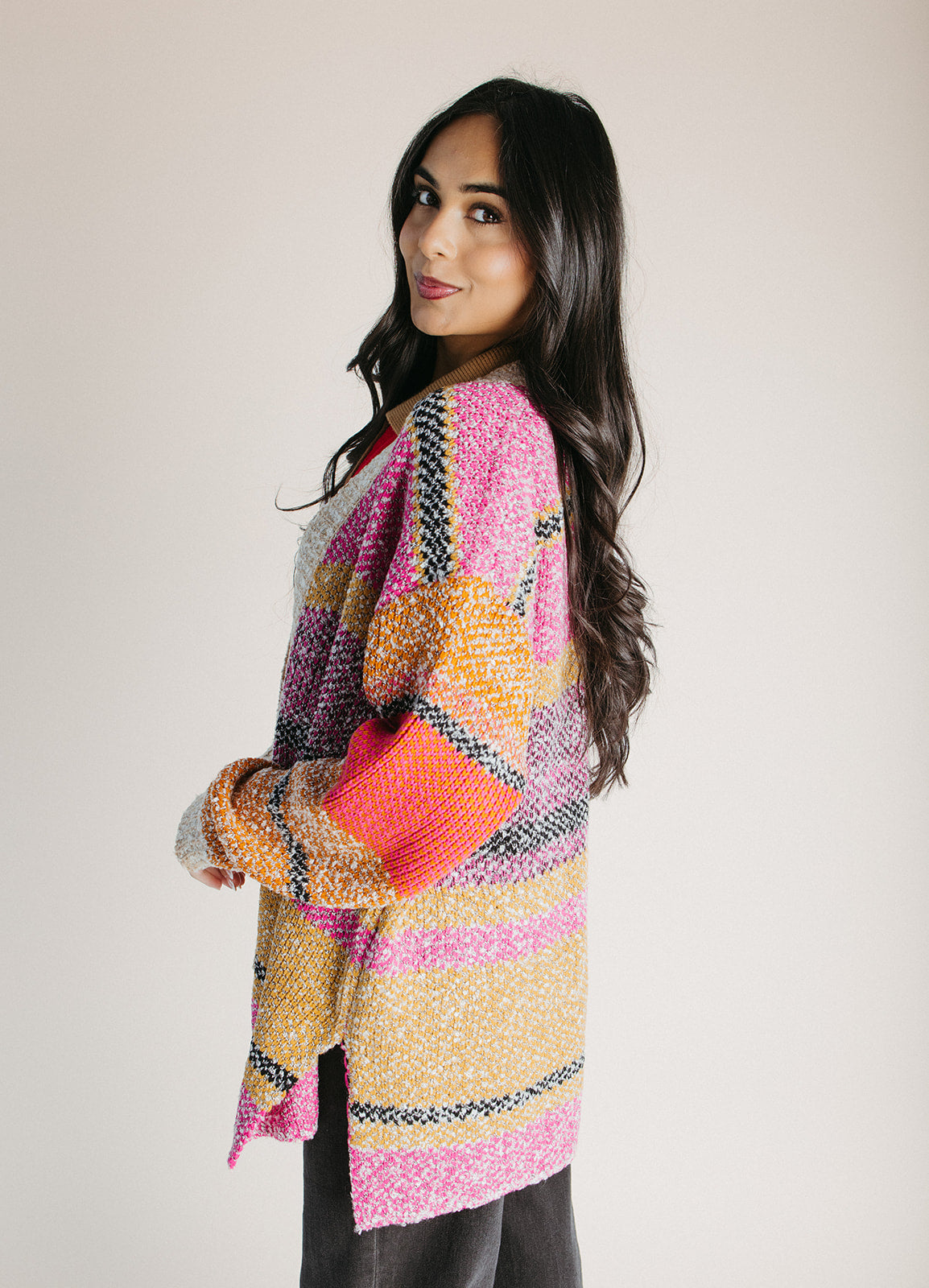 The Kiernan Oversized Cardigan in Fuchsia + Mustard Multi
