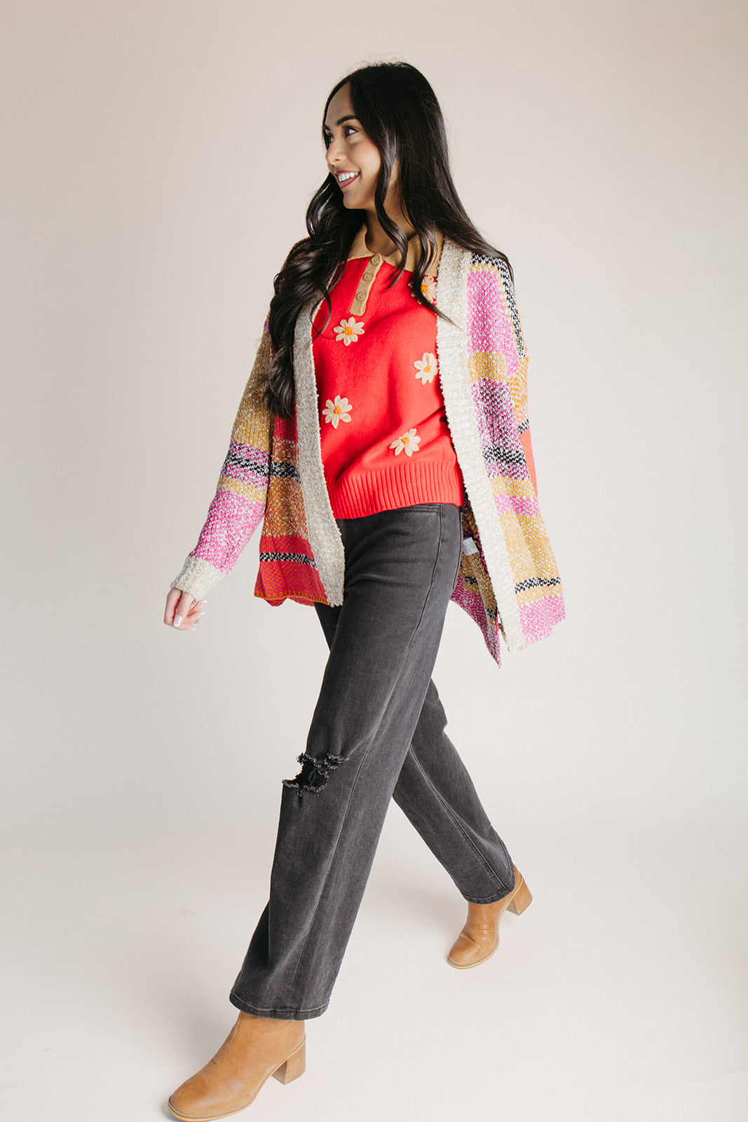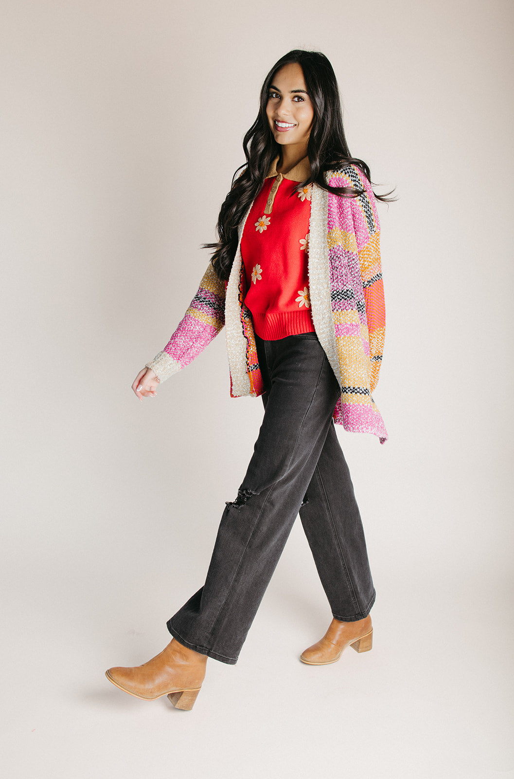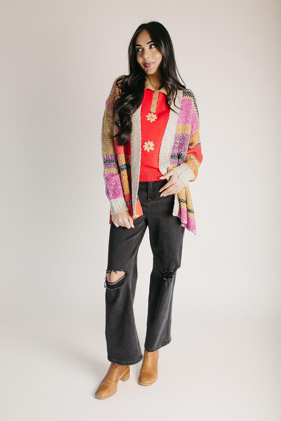 The Kiernan Oversized Cardigan in Fuchsia + Mustard Multi