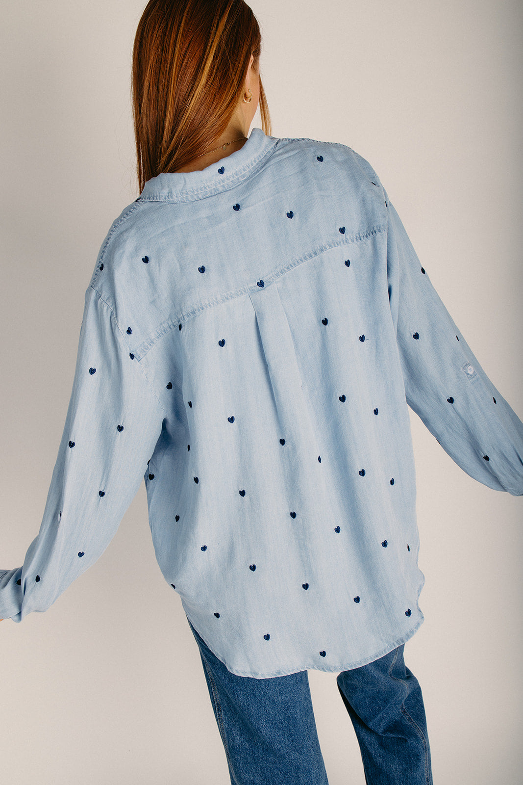 The Tirsa Heart Button-Up Blouse in Denim