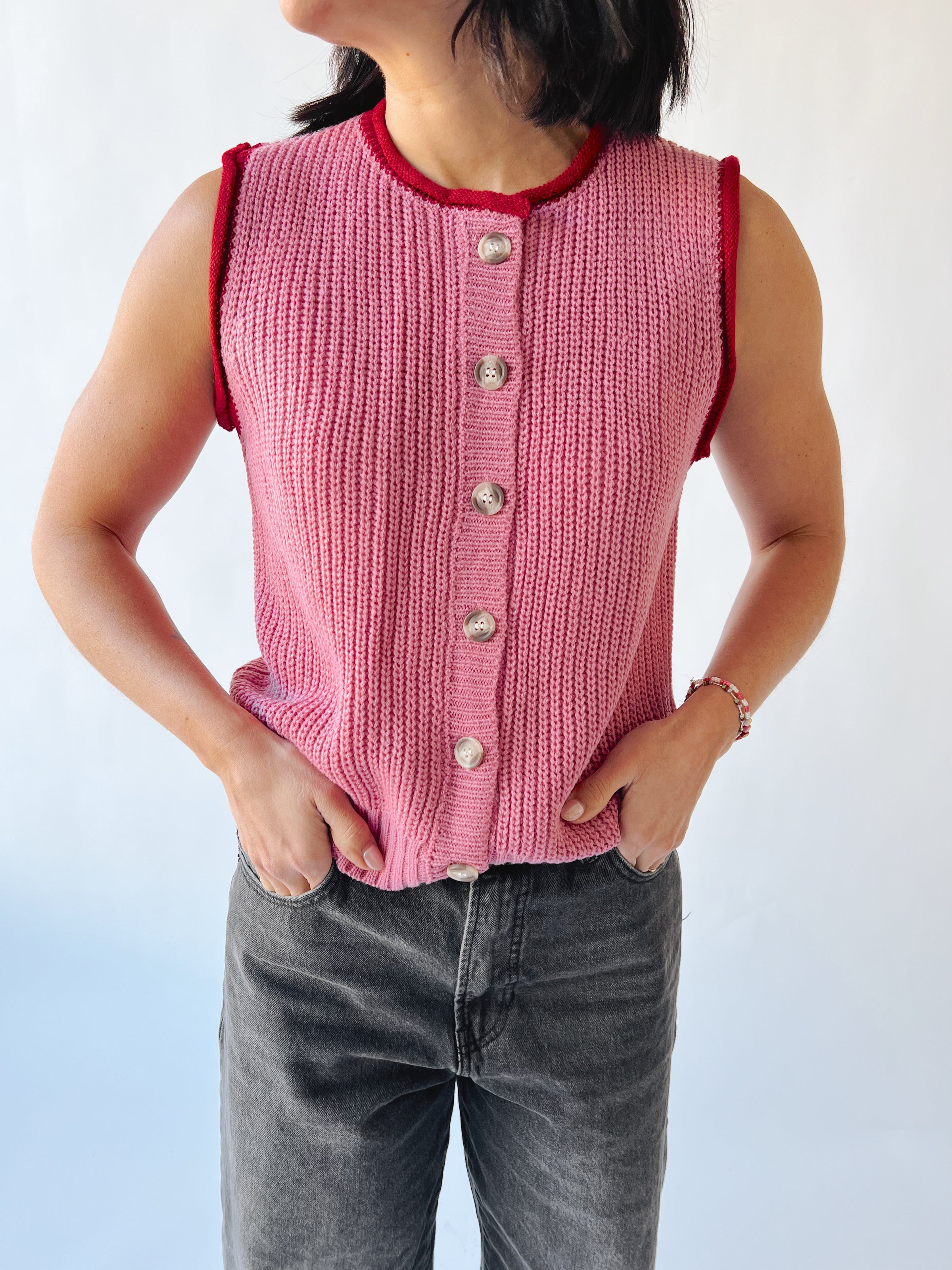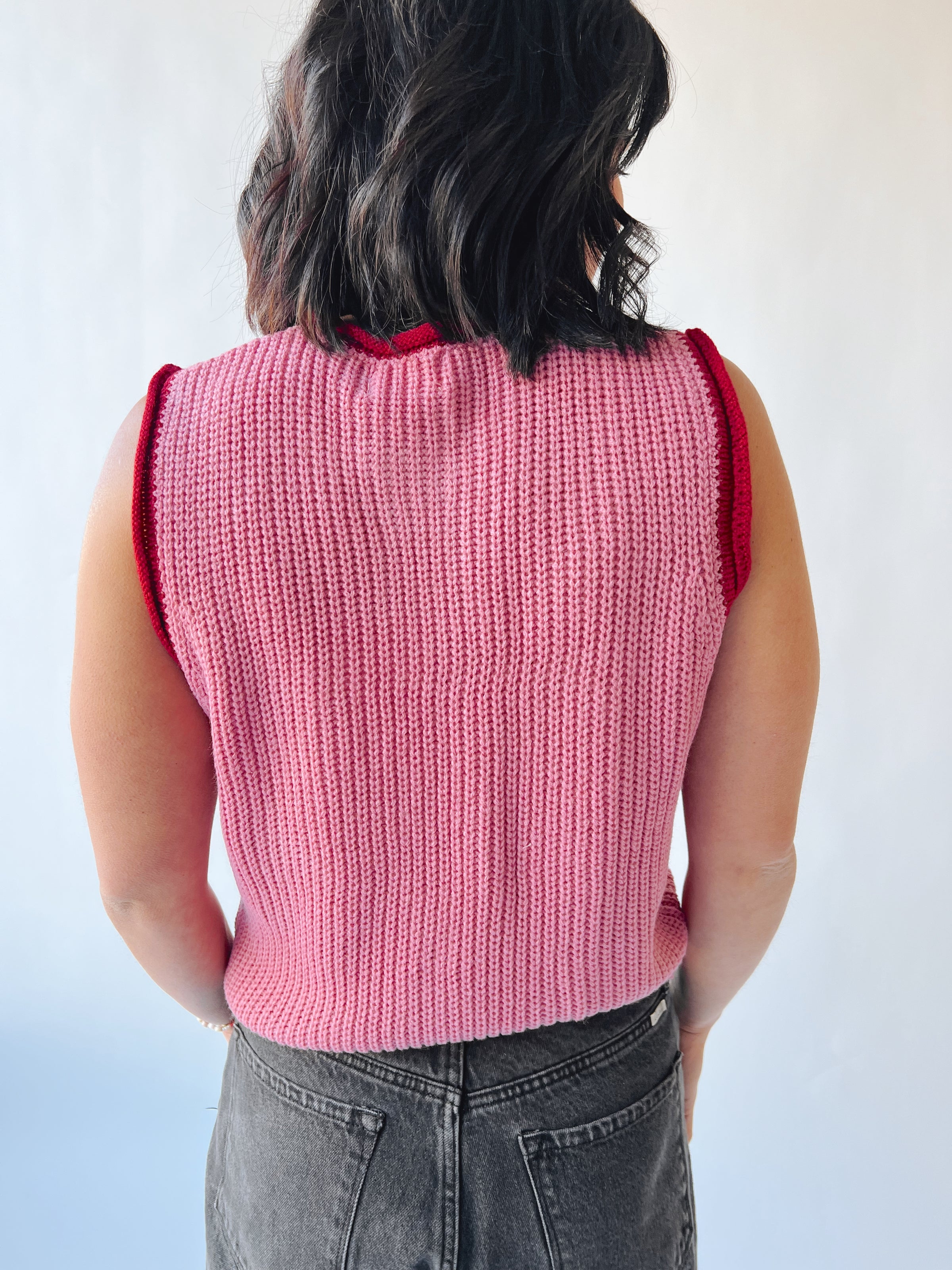 The Trussell Contrast Binding Sweater Vest in Pink