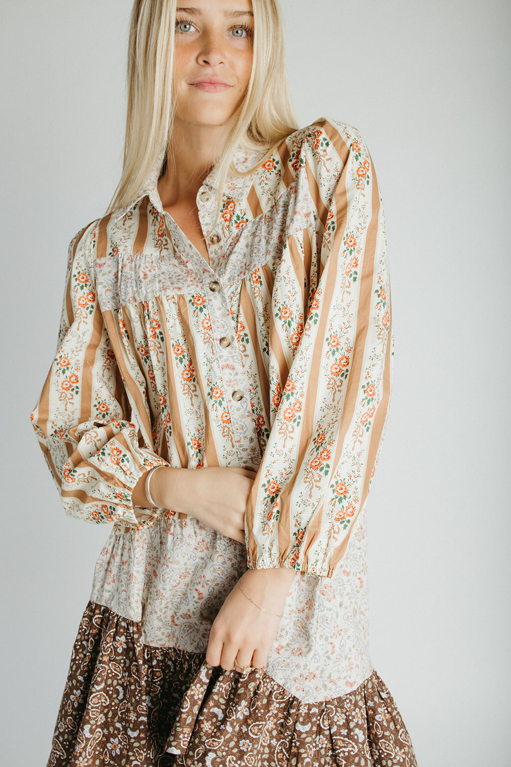The Stowell Floral Printed Maxi Dress in Ecru Multi