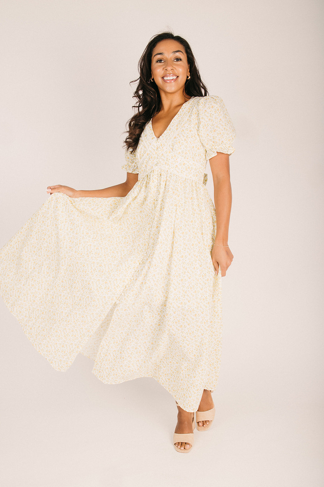 The Babitz Floral Button-Up Dress in Daffodil