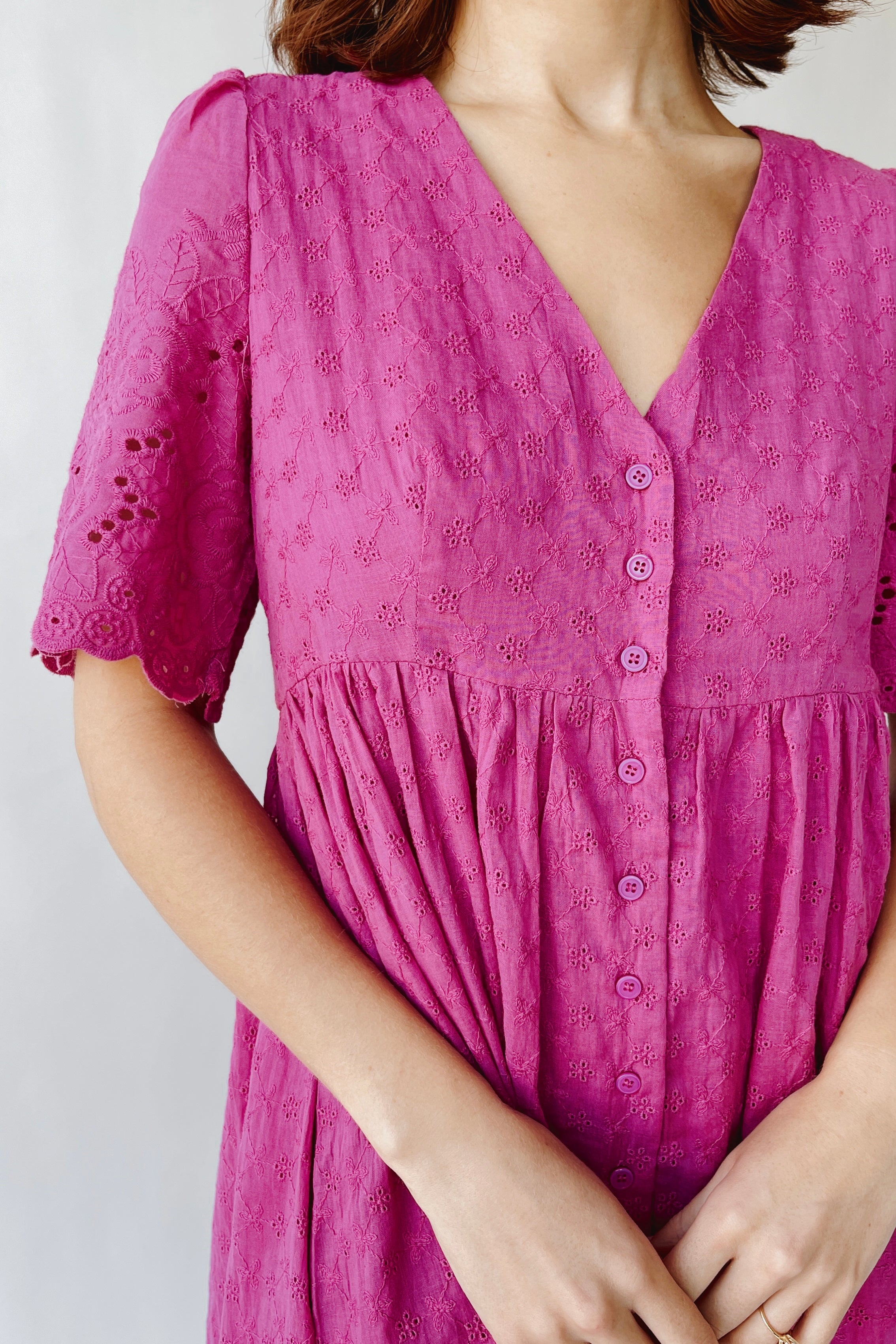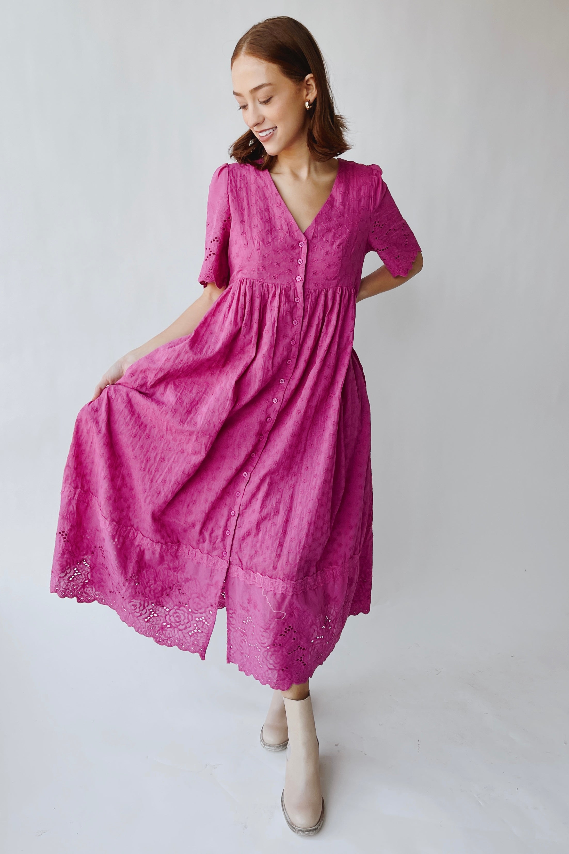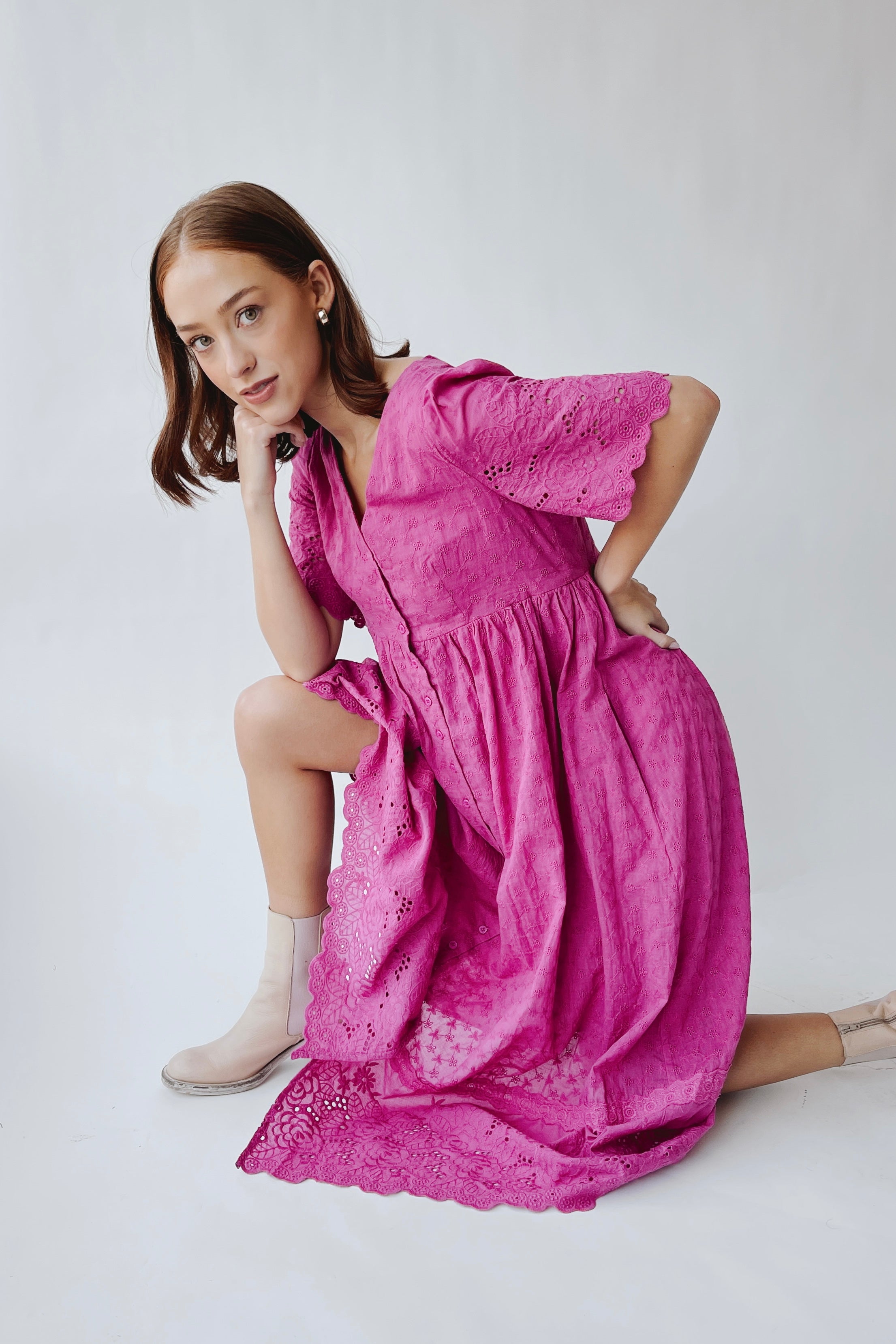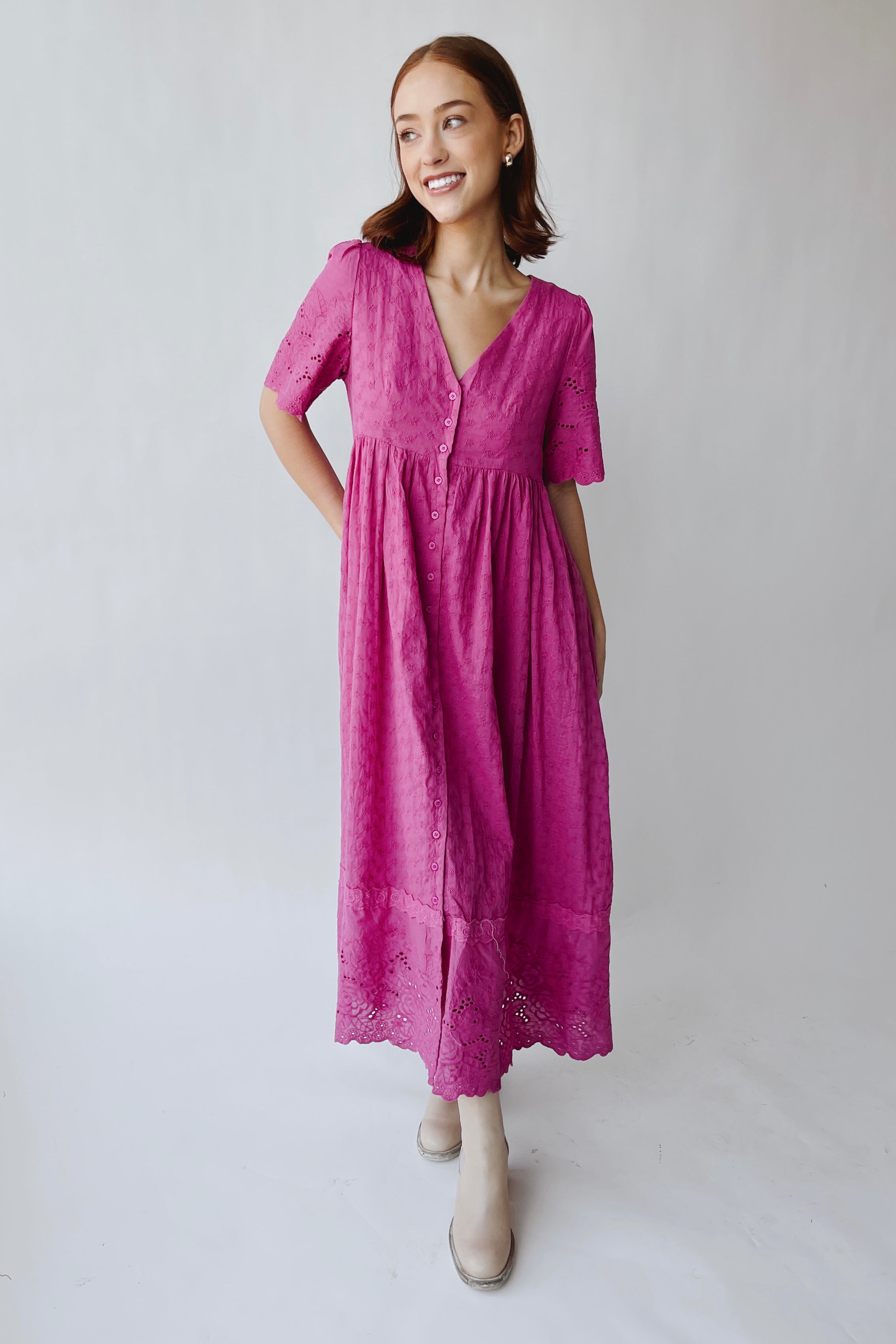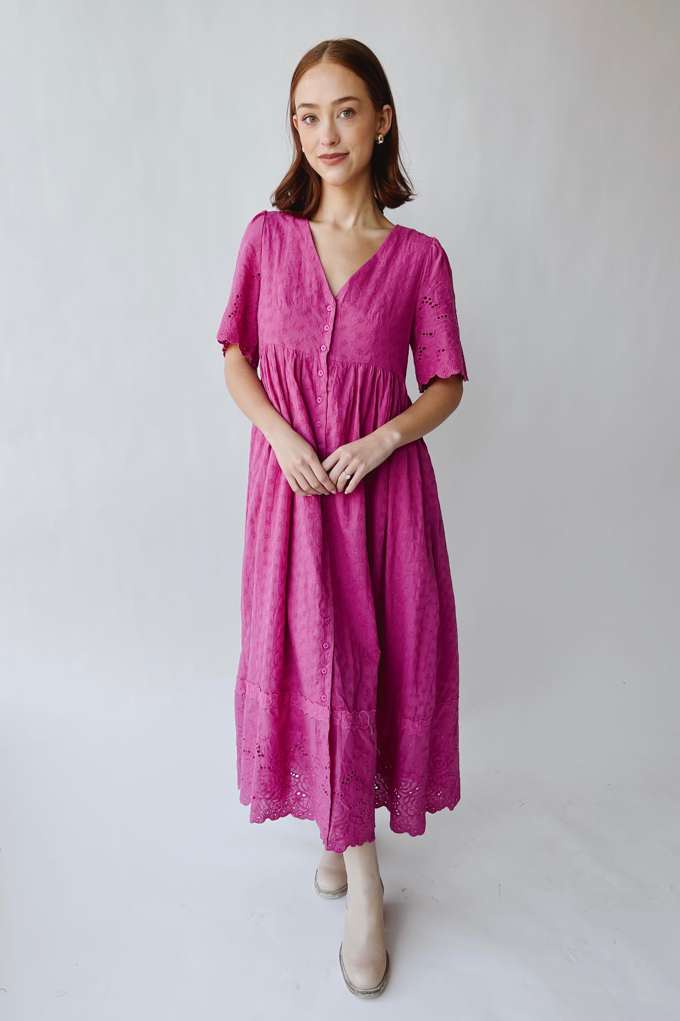 The Geralyn Button-Up Midi Dress in Electric Fuchsia