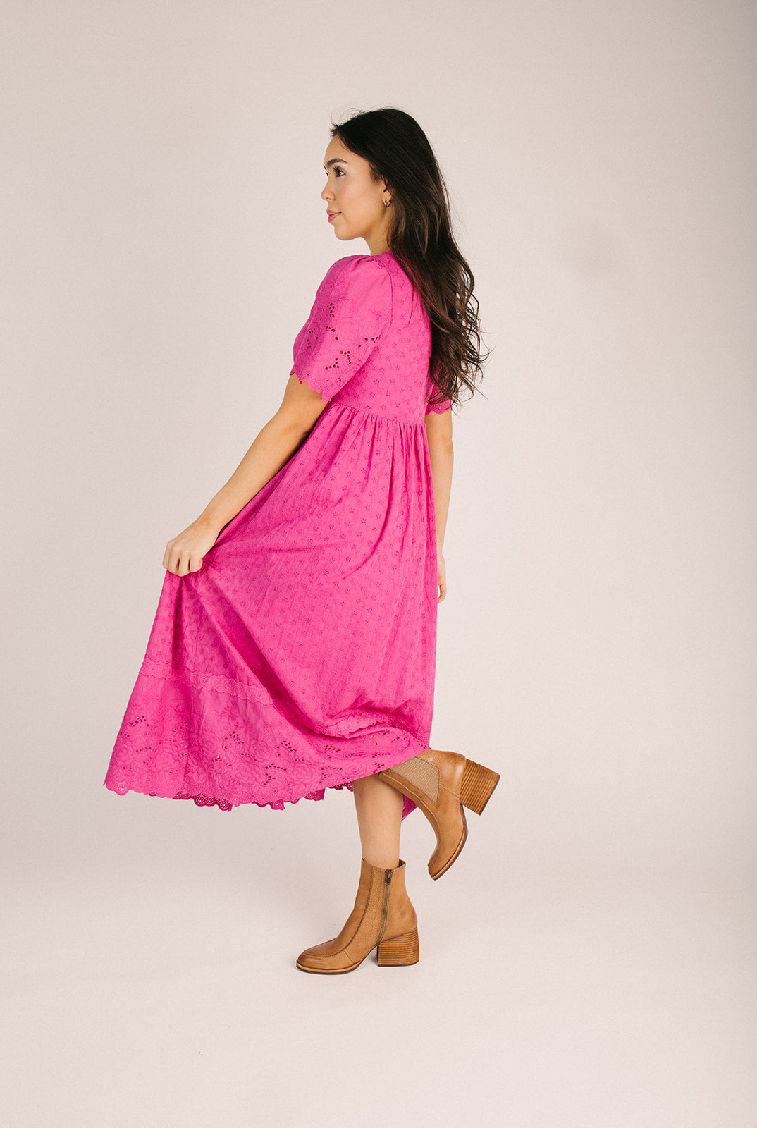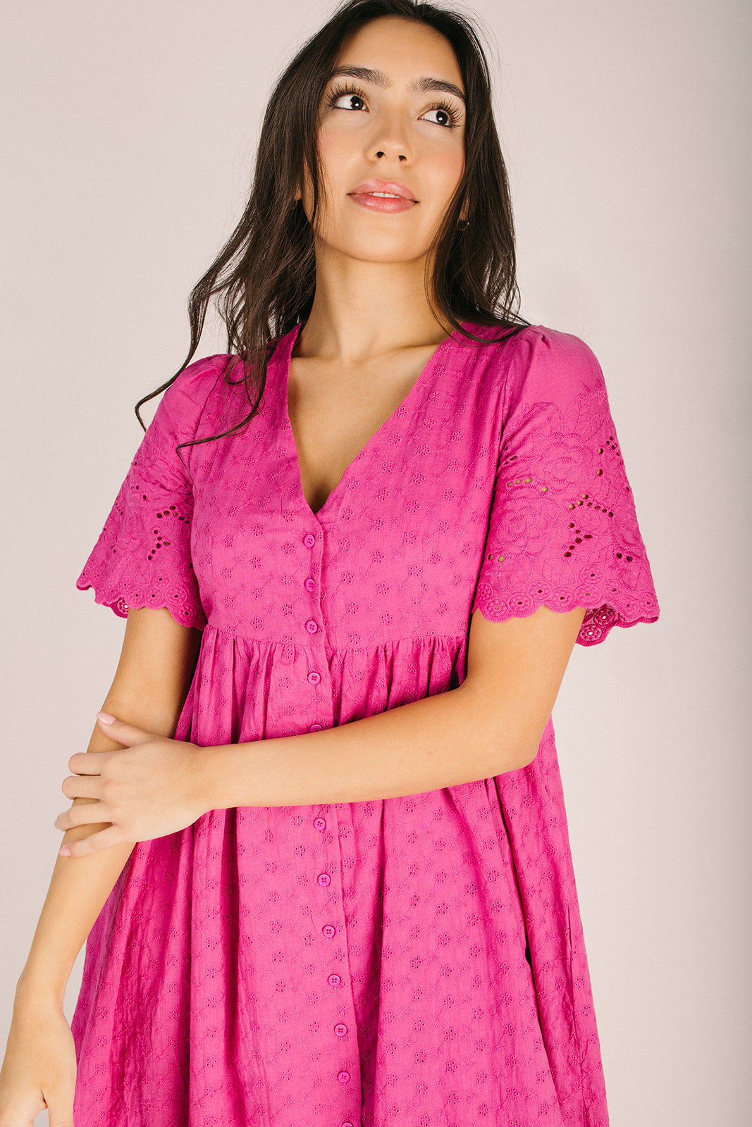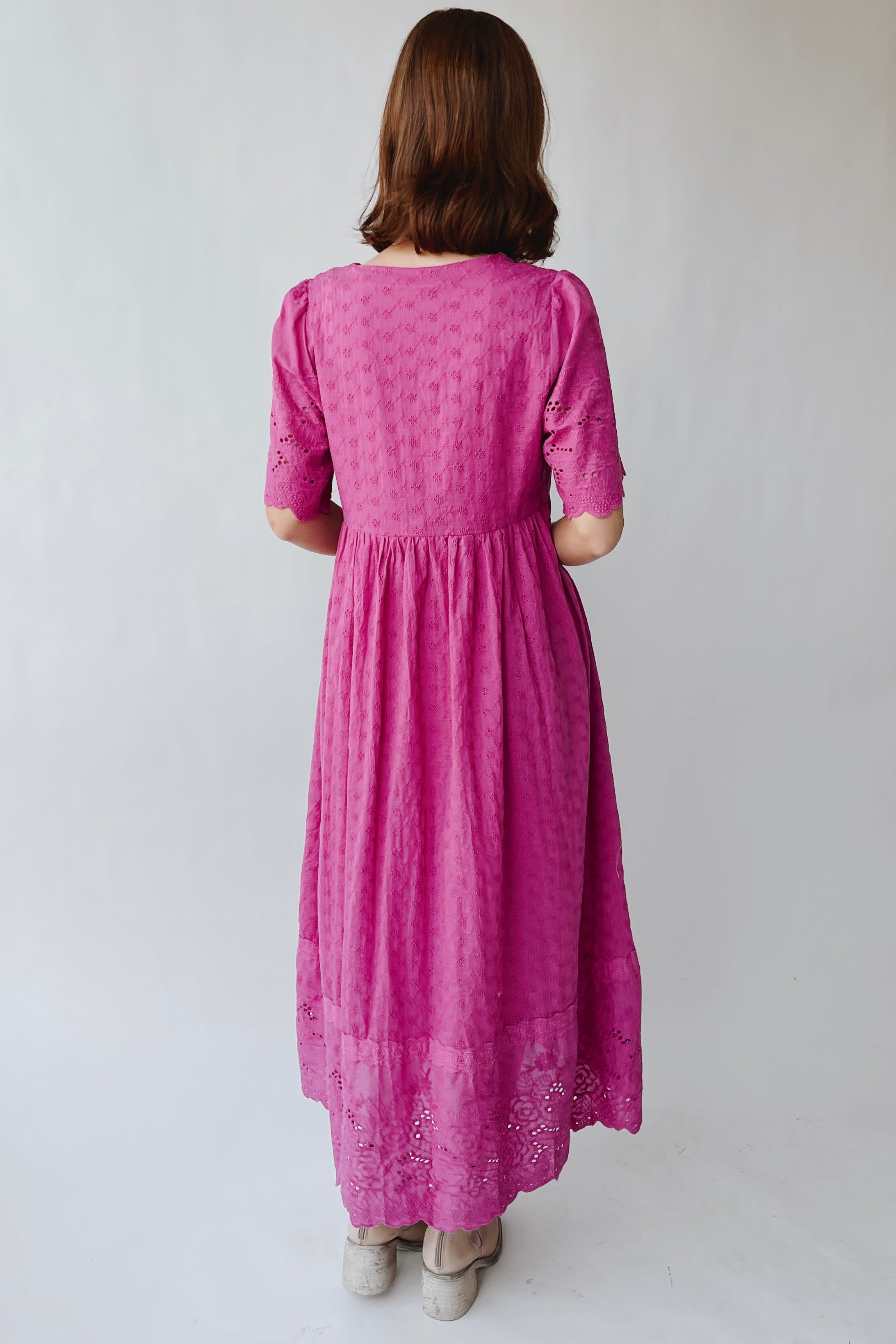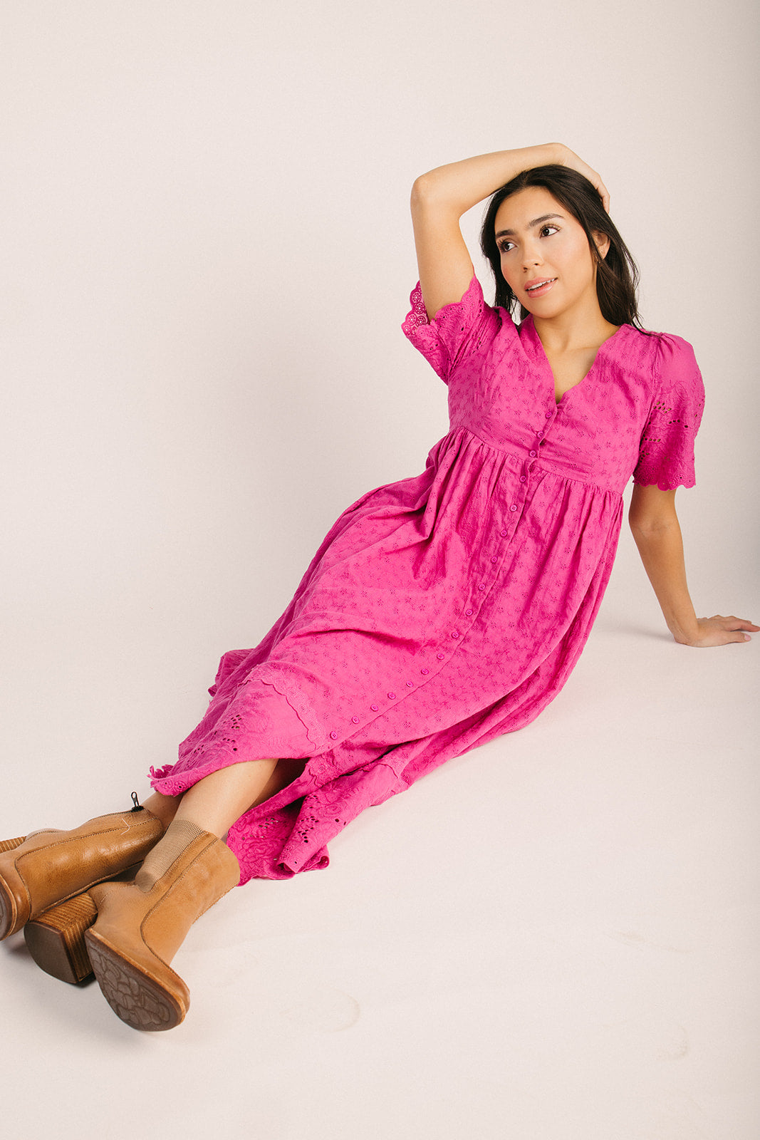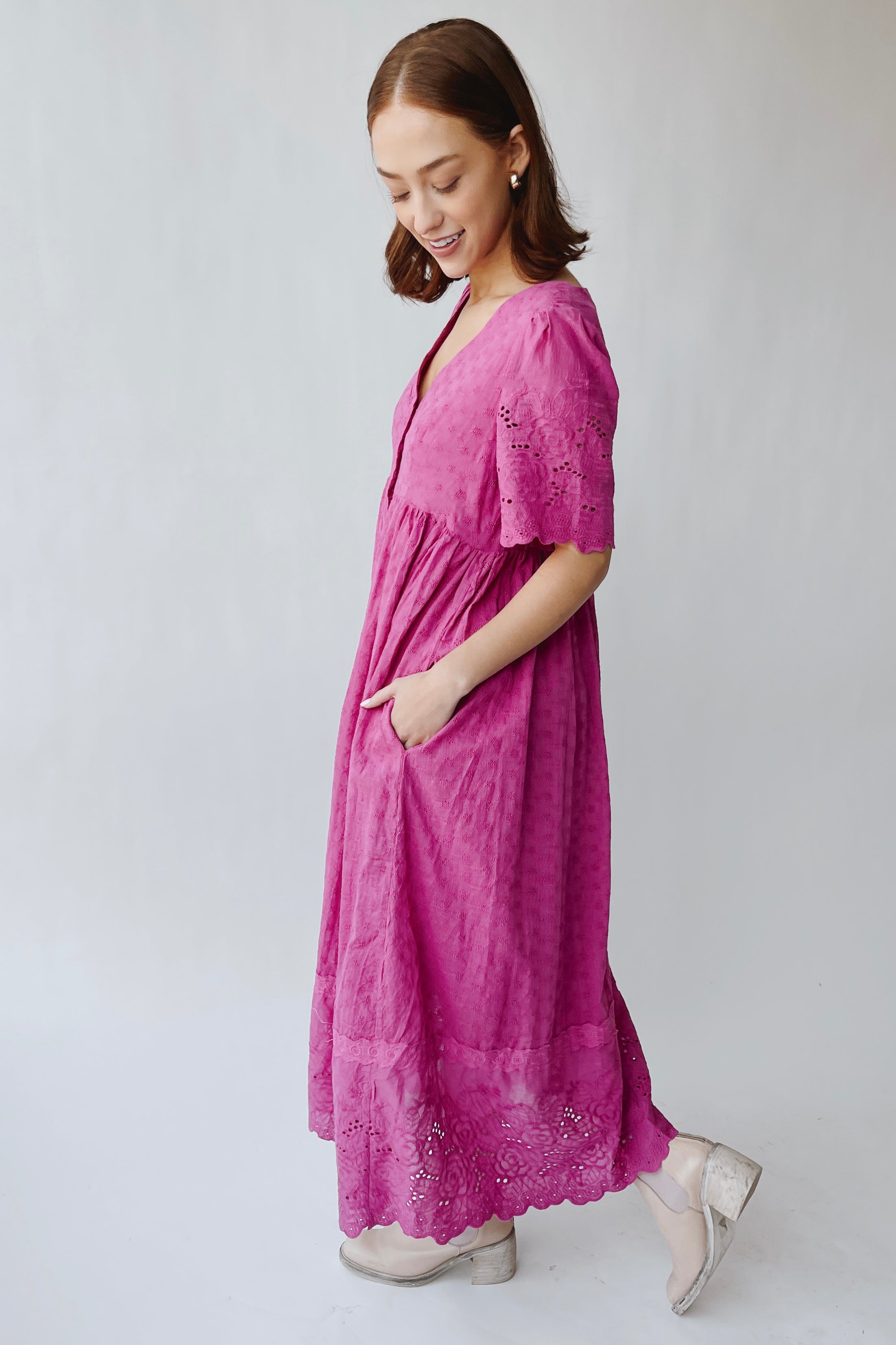 The Geralyn Button-Up Midi Dress in Electric Fuchsia