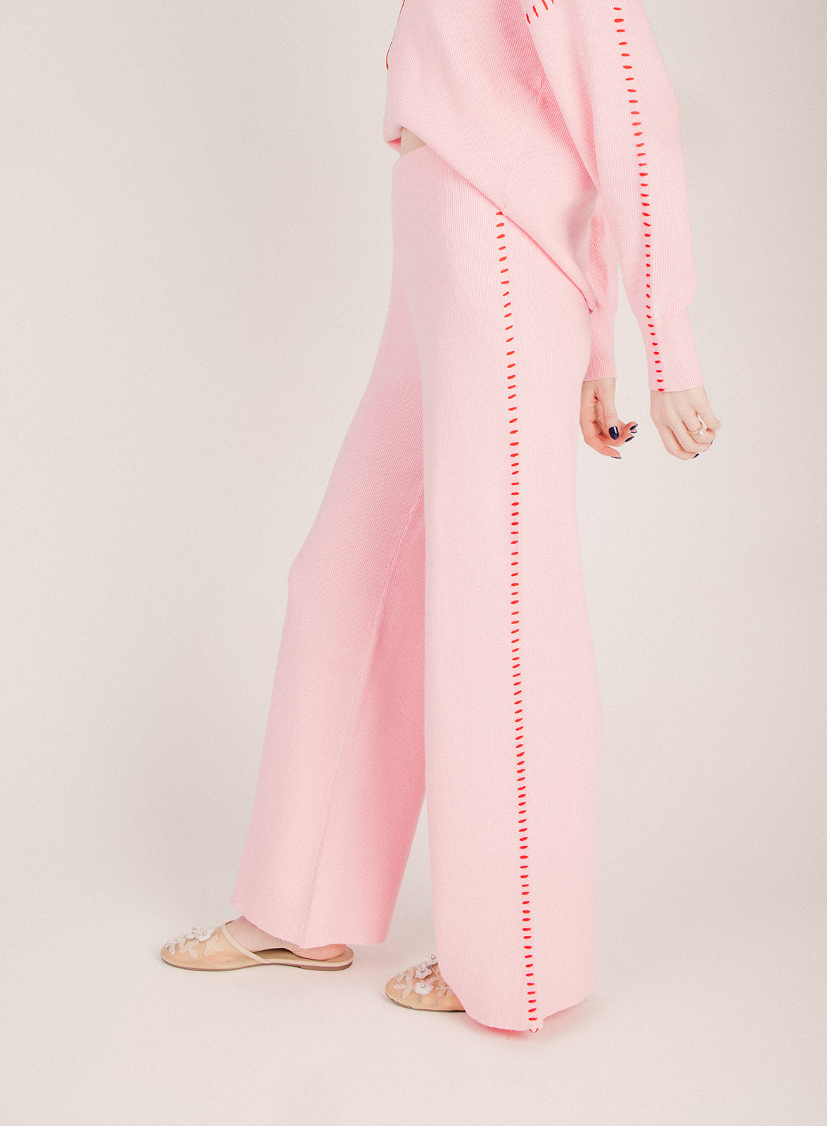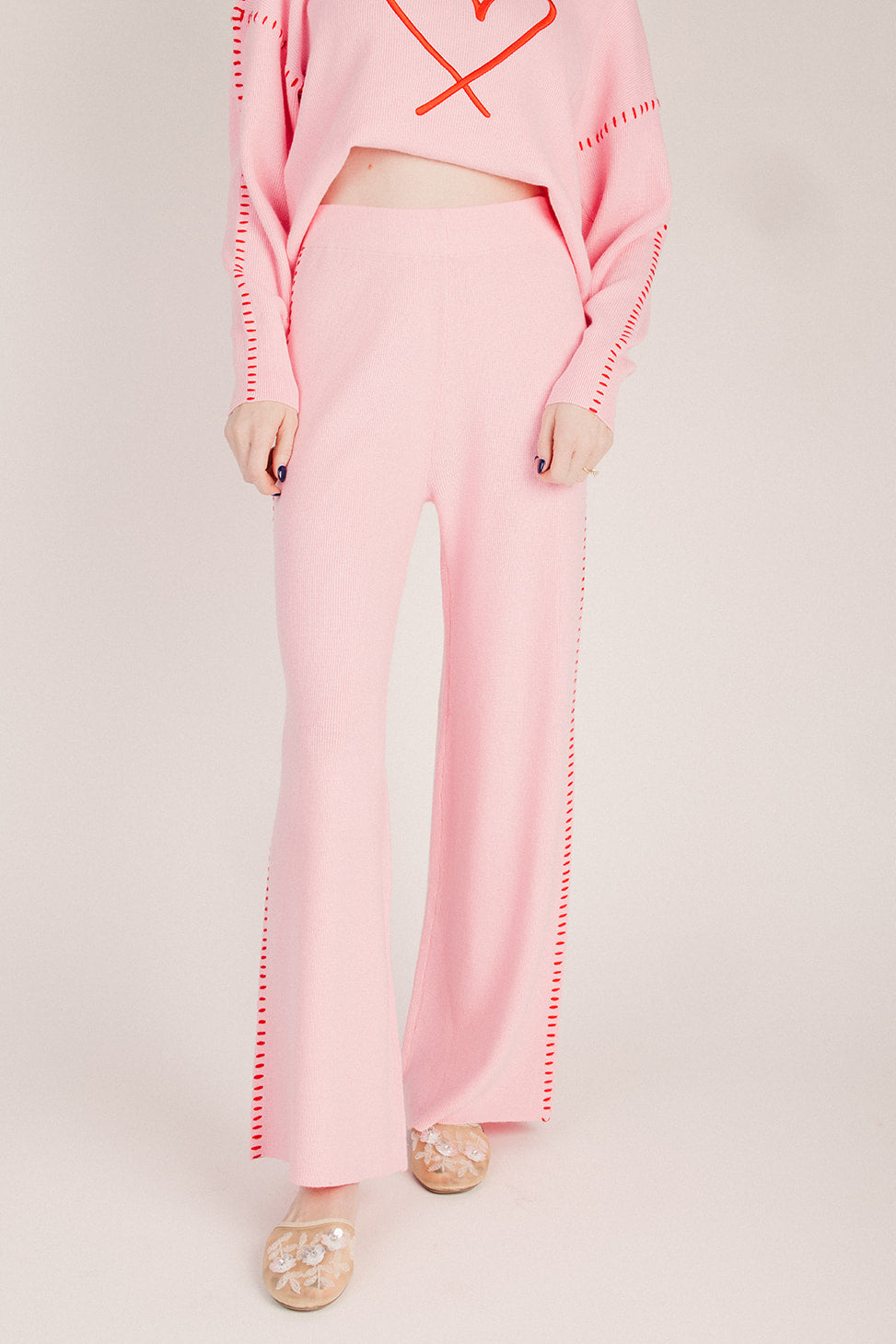 The Snider Wide Leg Blanket Stitch Pant in Pink + Red