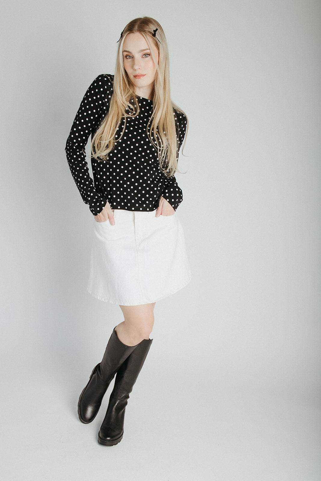 The Kemron Polka Dot Long Sleeve Tee in Black