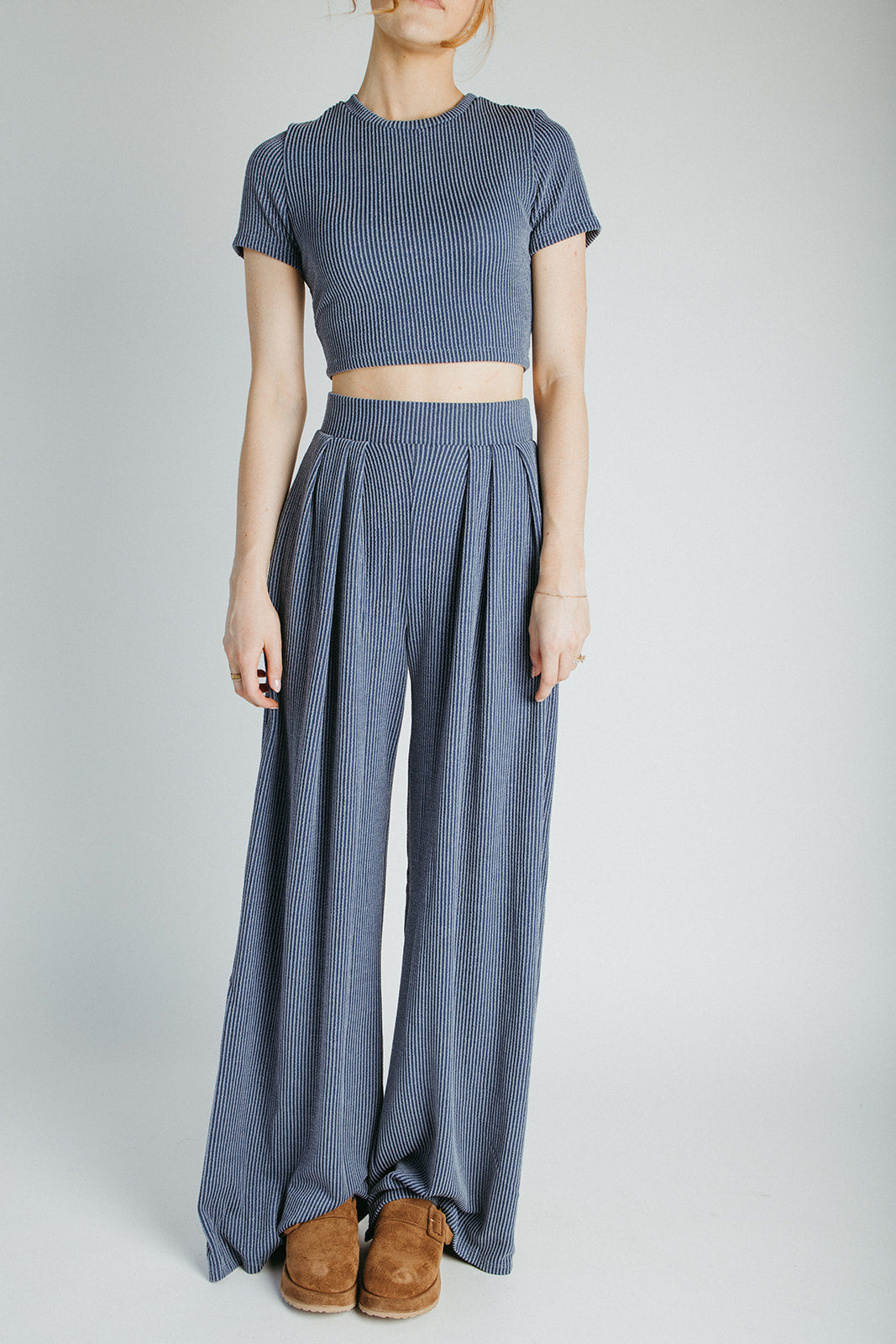 The Leanne Ribbed Lounge Set in Blue
