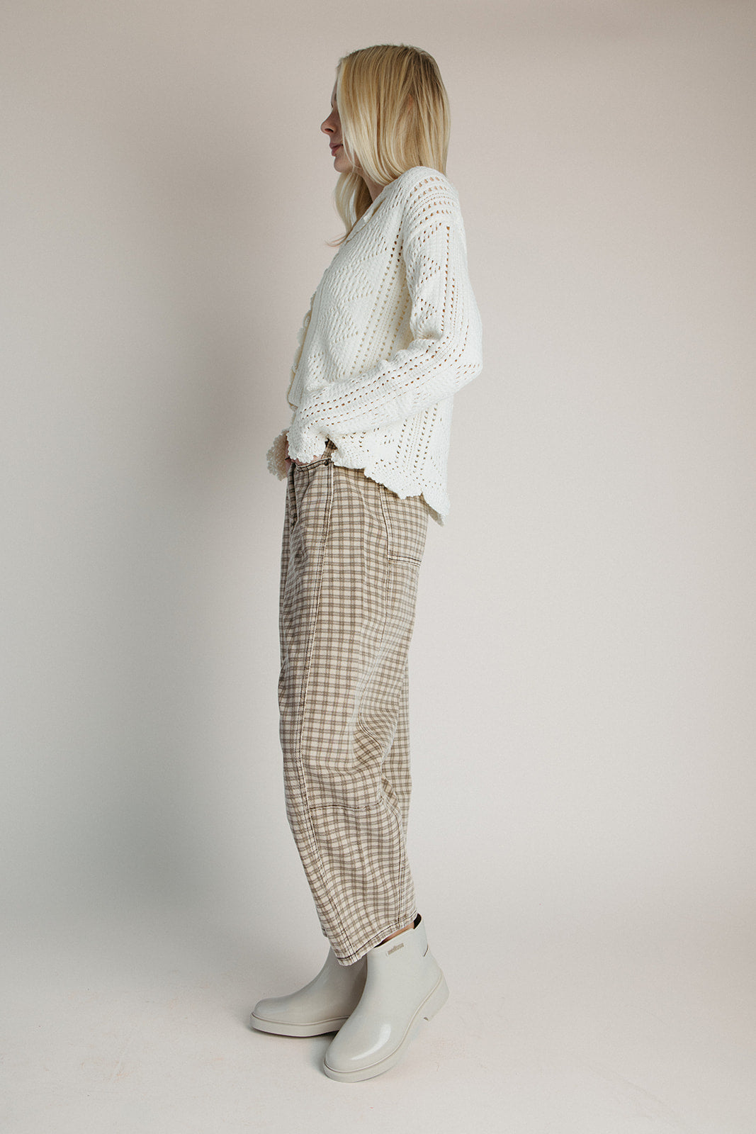 The Bettini Checkered Barrel Pant in Tan + Brown