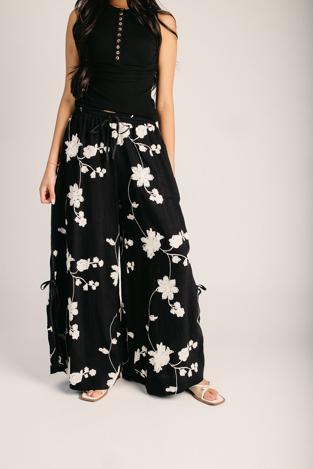 Elevate your everyday style with the Basta Embroidered Floral Pant in Black. These versatile pants feature delicate floral embroidery that adds a playful touch to any outfit. The timeless black base pairs effortlessly with your favorite tops, while the intricate embroidery details ensure you'll stand out from the crowd. Dress them up or down—these pants are your new wardrobe essential.