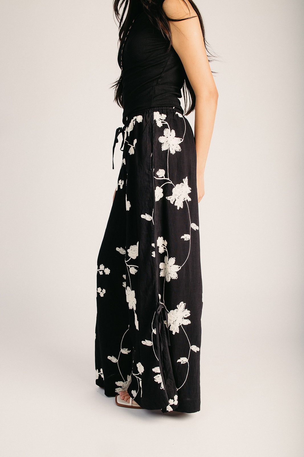 The Basta Embroidered Floral Pant in Black