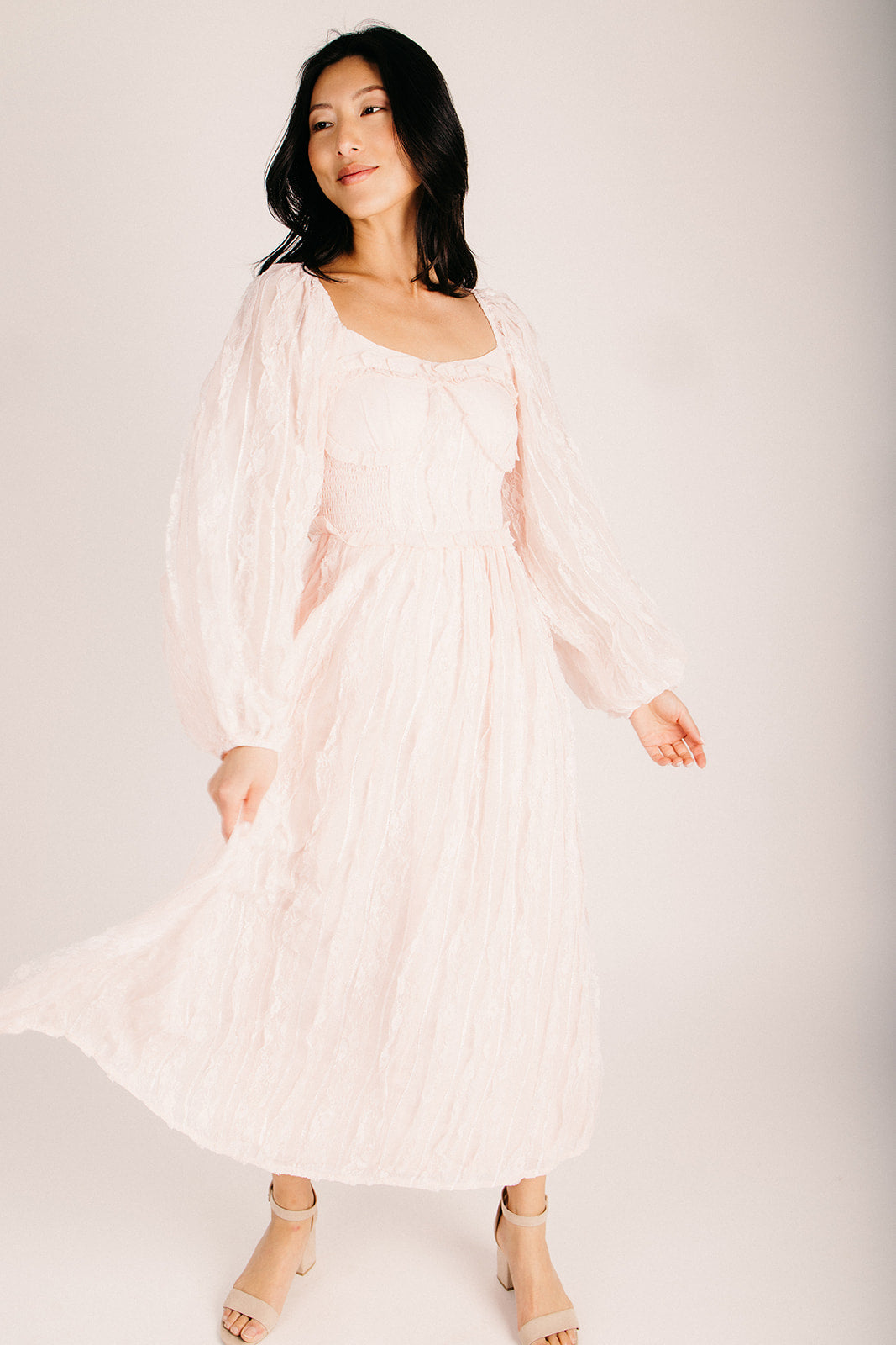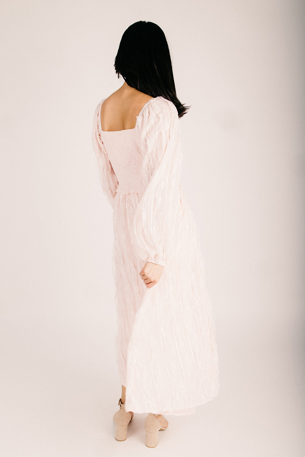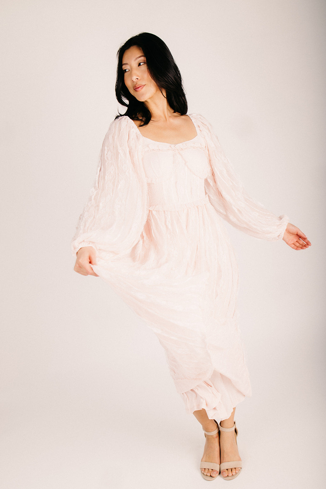 Turn heads in this stunning blush maxi that's equal parts romantic and bold. The intricate lace corset bodice cinches your waist while the flowing skirt creates an effortlessly elegant silhouette. Whether you're dancing the night away or making a grand entrance, this dress delivers that "wow" moment with a playful wink. Timeless elegance meets modern confidence—because sometimes you want to feel absolutely fabulous.