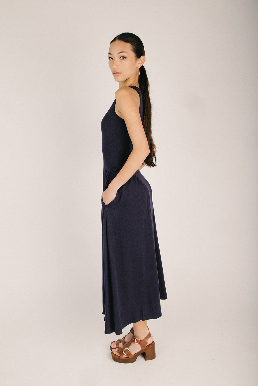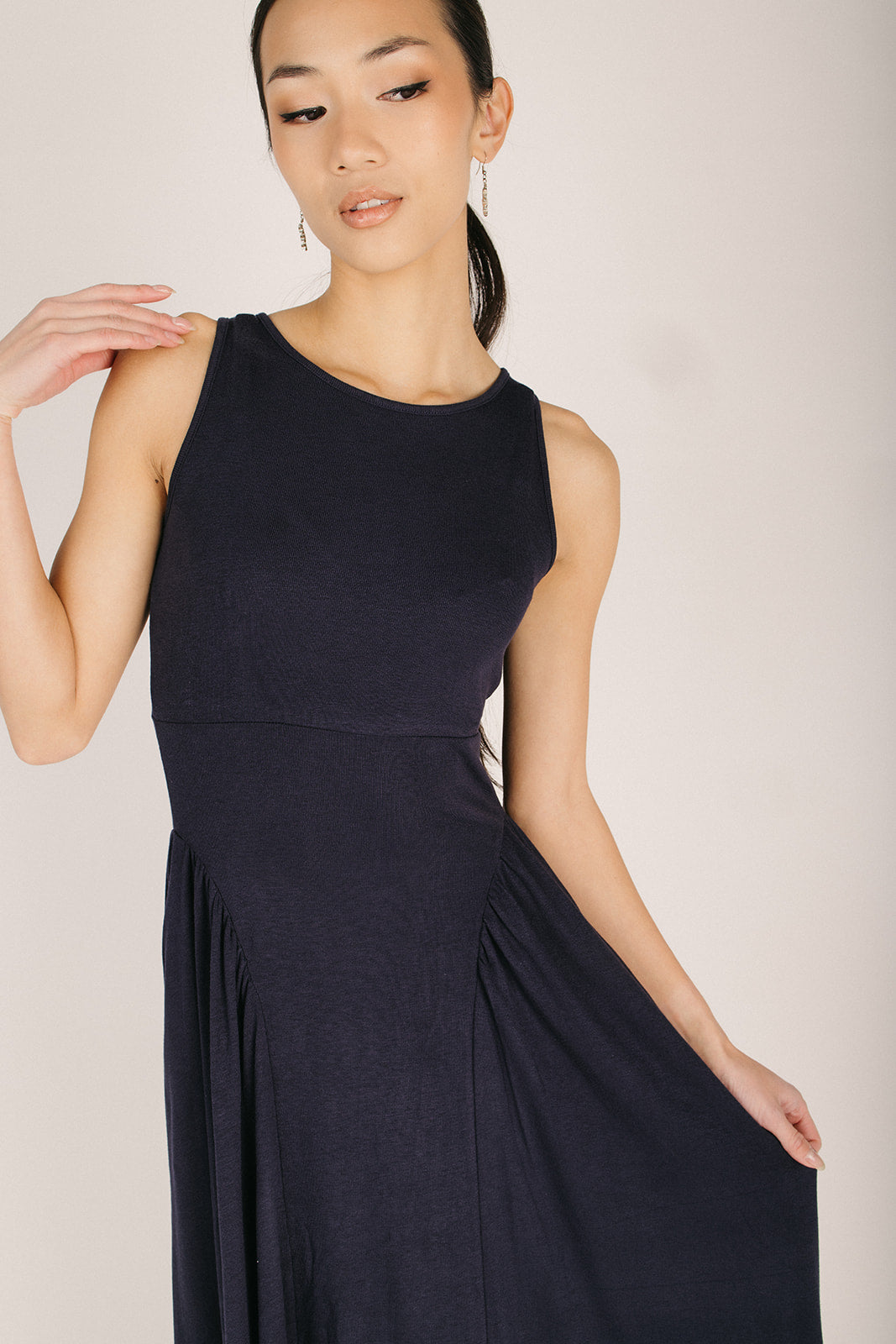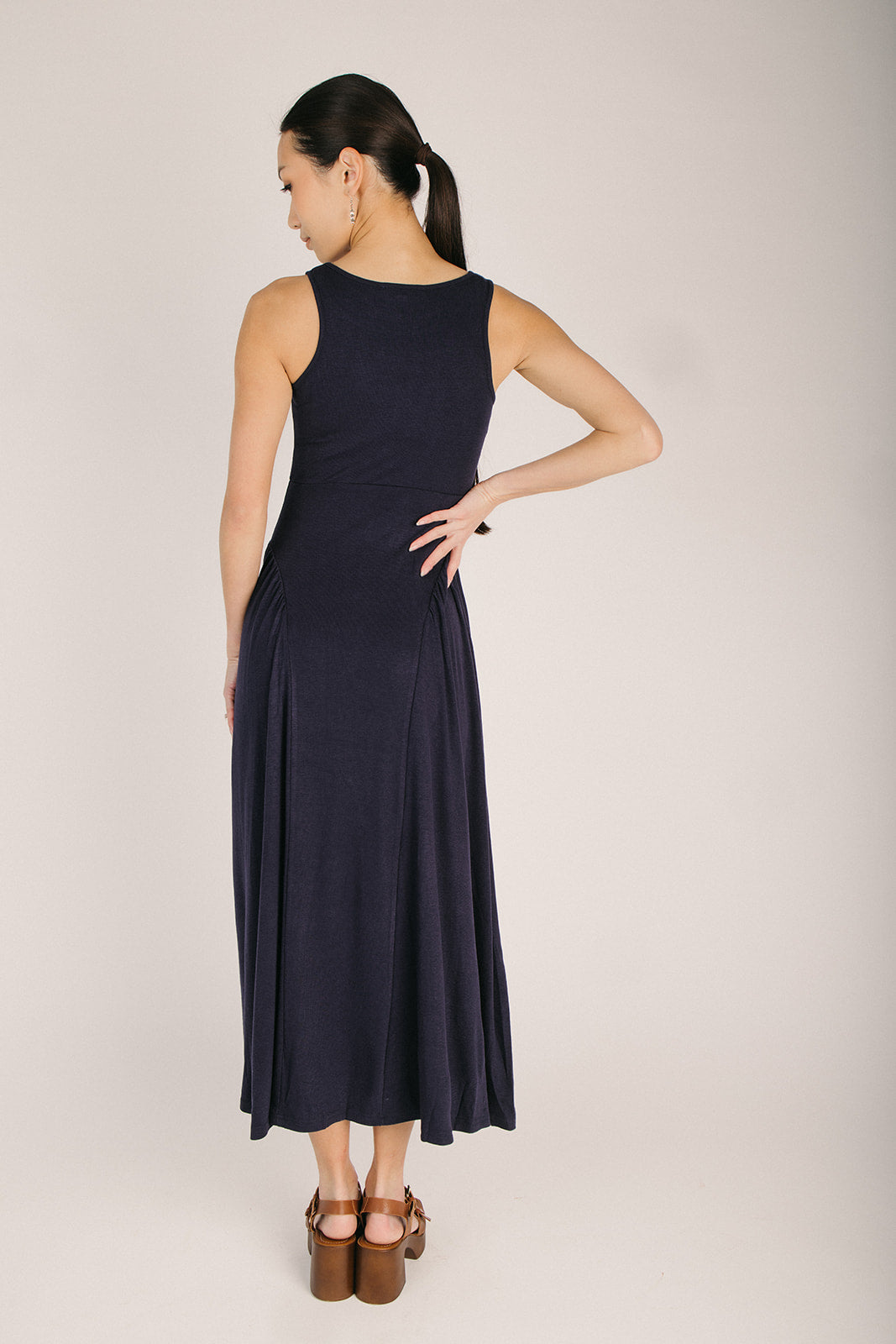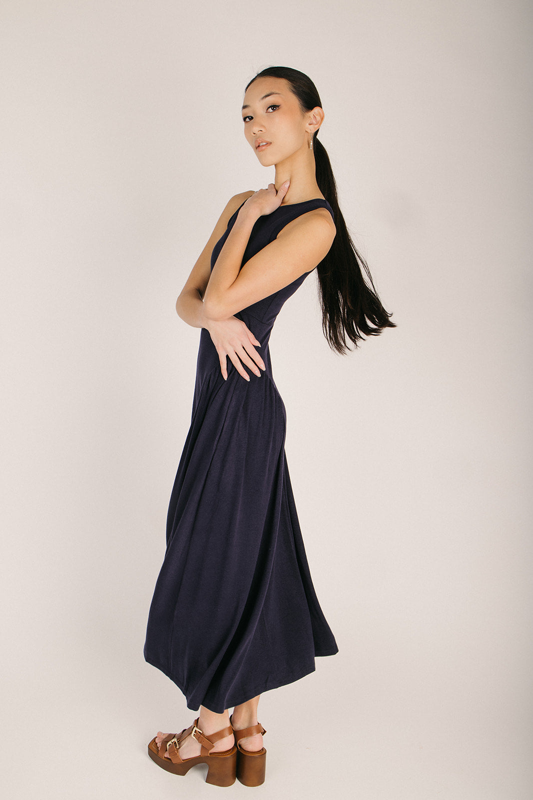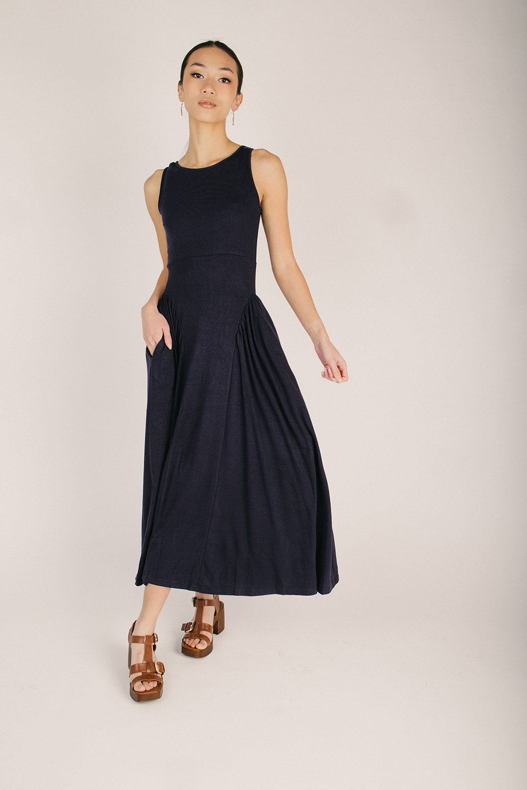 The Webster Ribbed Pleated Maxi Dress in Navy