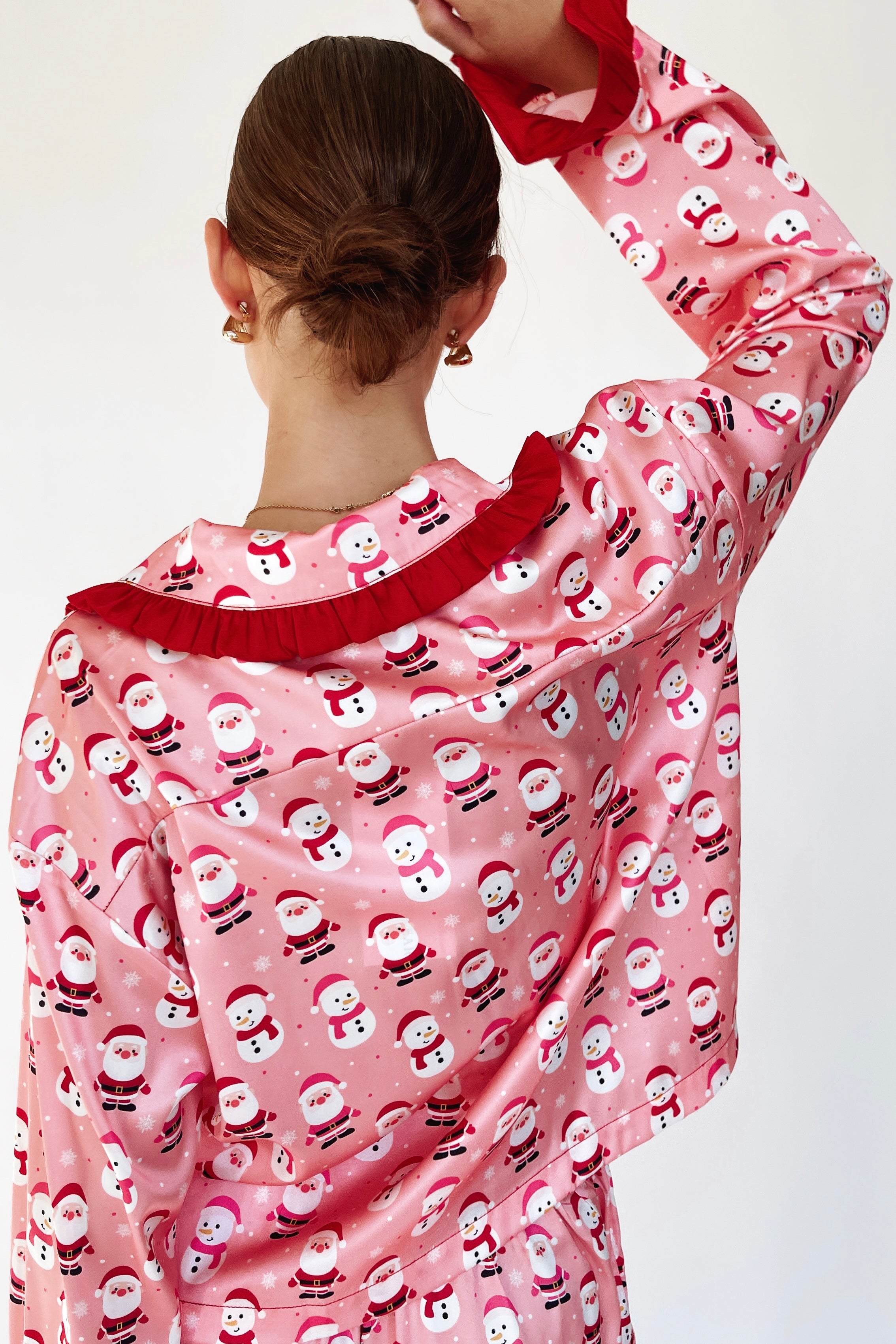 The Holly Jolly Ruffle Pajama Set in Pink + Red