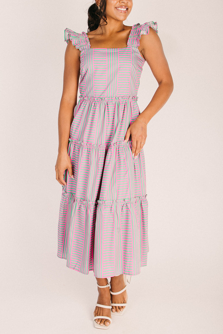 The Valda Striped Midi Dress in Pink + Green