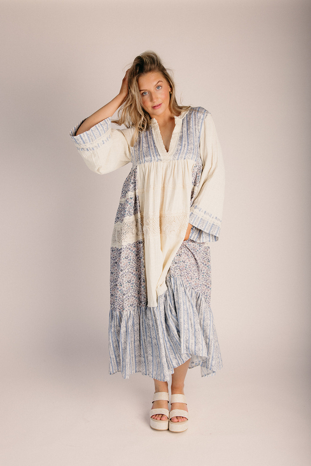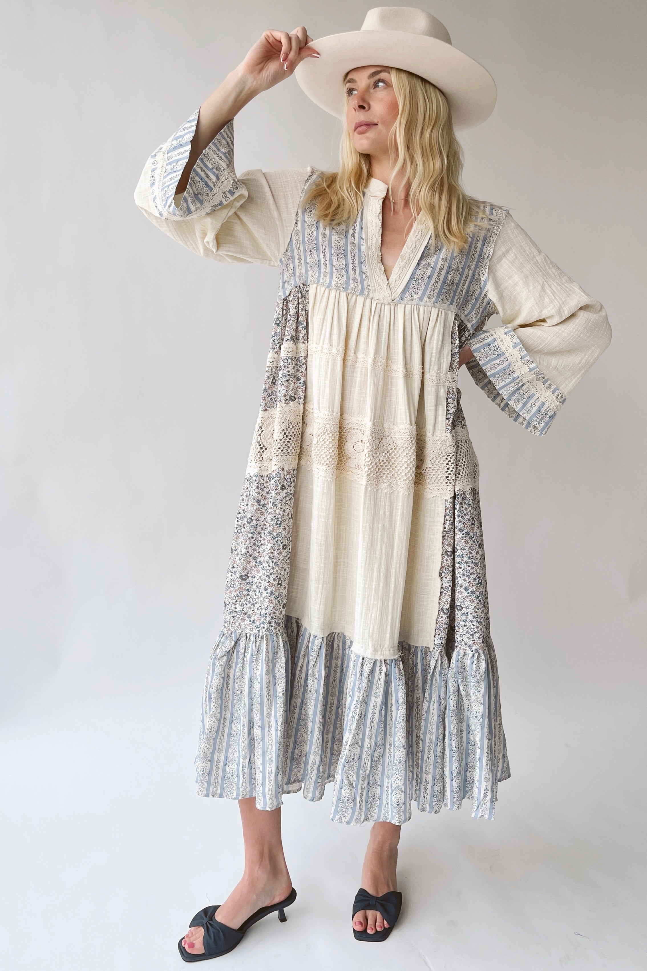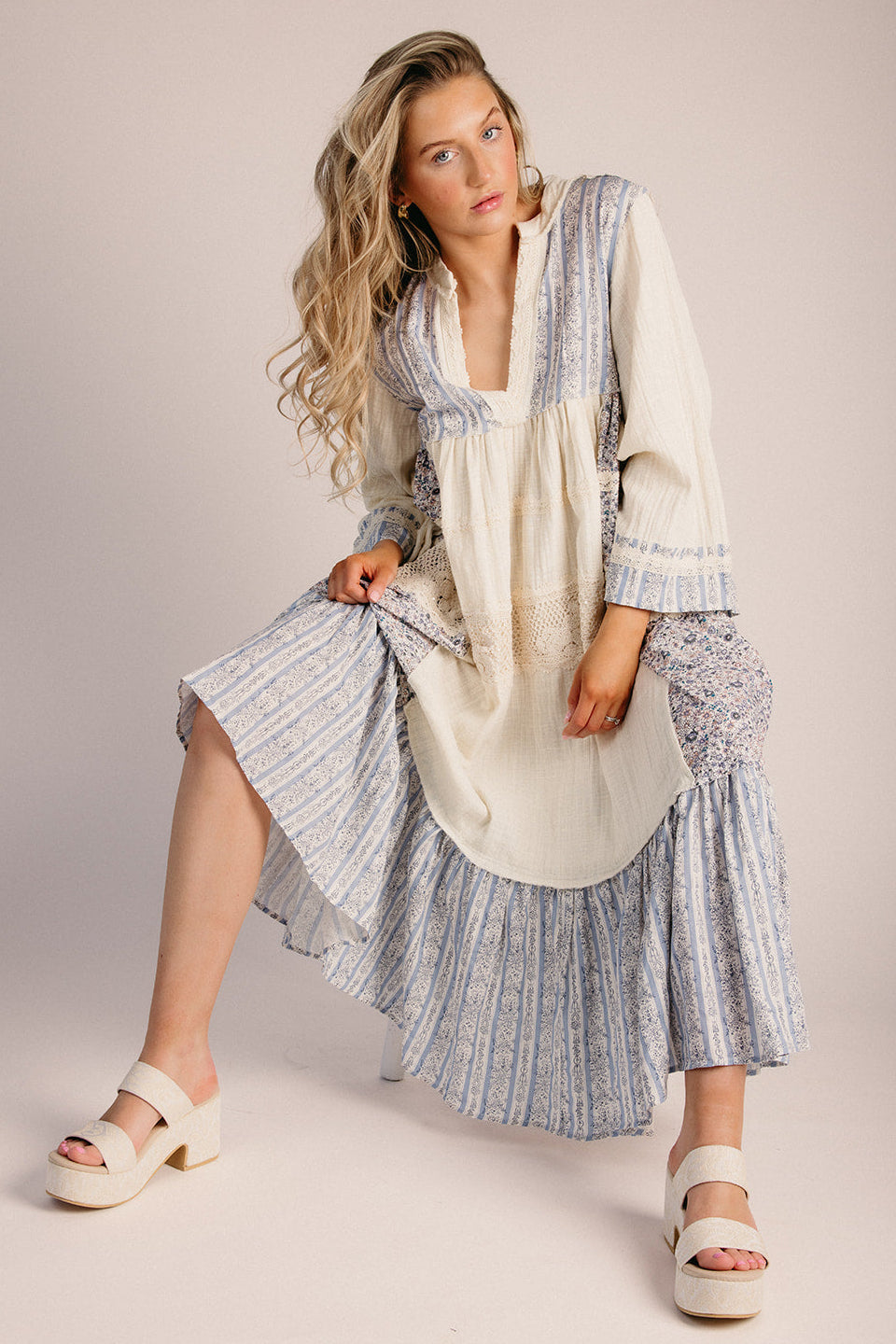 The Dansie Floral Contrast Maxi Dress in Natural