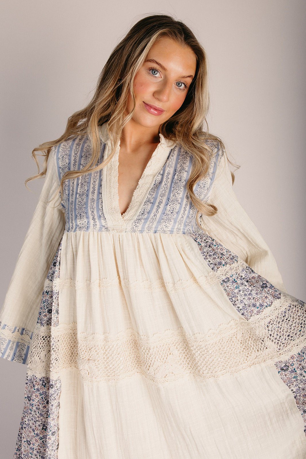 The Dansie Floral Contrast Maxi Dress in Natural Twirl into spring with this charming maxi dress that effortlessly blends comfort and style. Featuring a delicate floral pattern set against a natural backdrop, the contrasting design adds visual interest without overwhelming your look. The flowing silhouette skims your figure gracefully, making it perfect for everything from casual brunches to garden parties. Pair it with sneakers for a laid-back vibe or dress it up with sandals and jewelry for something more polished. This versatile piece is your new go-to for days when you want to feel put-together without trying too hard.