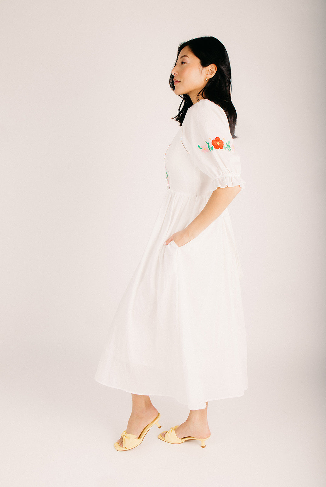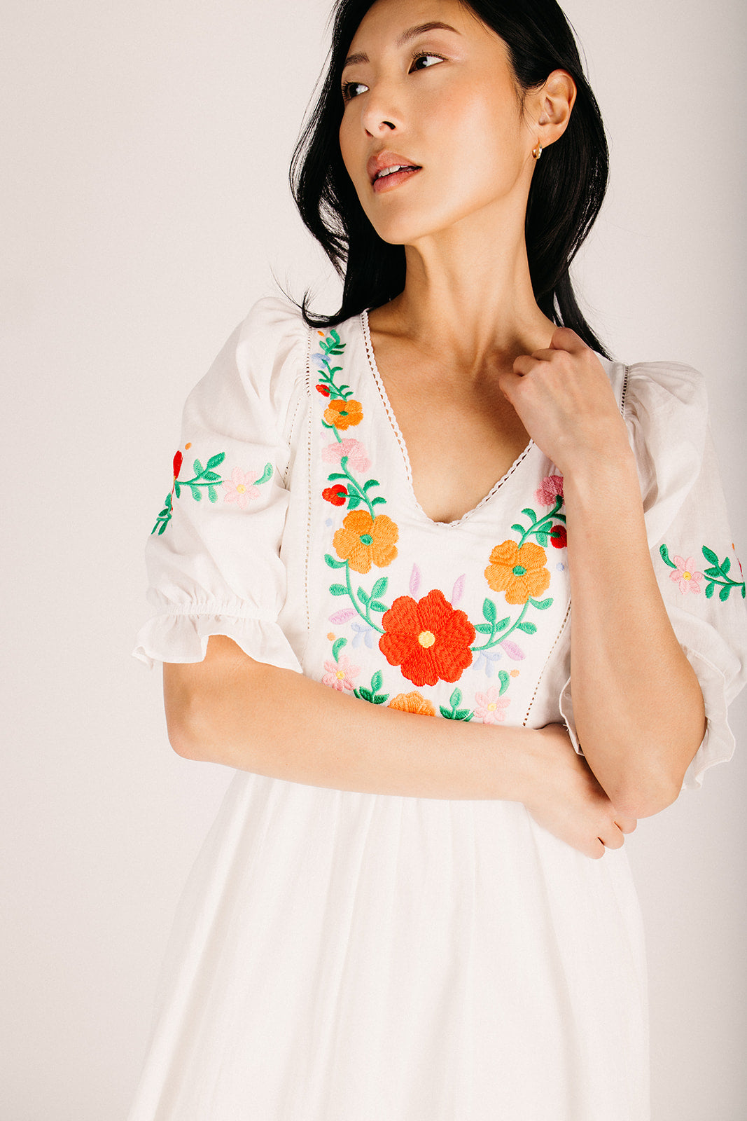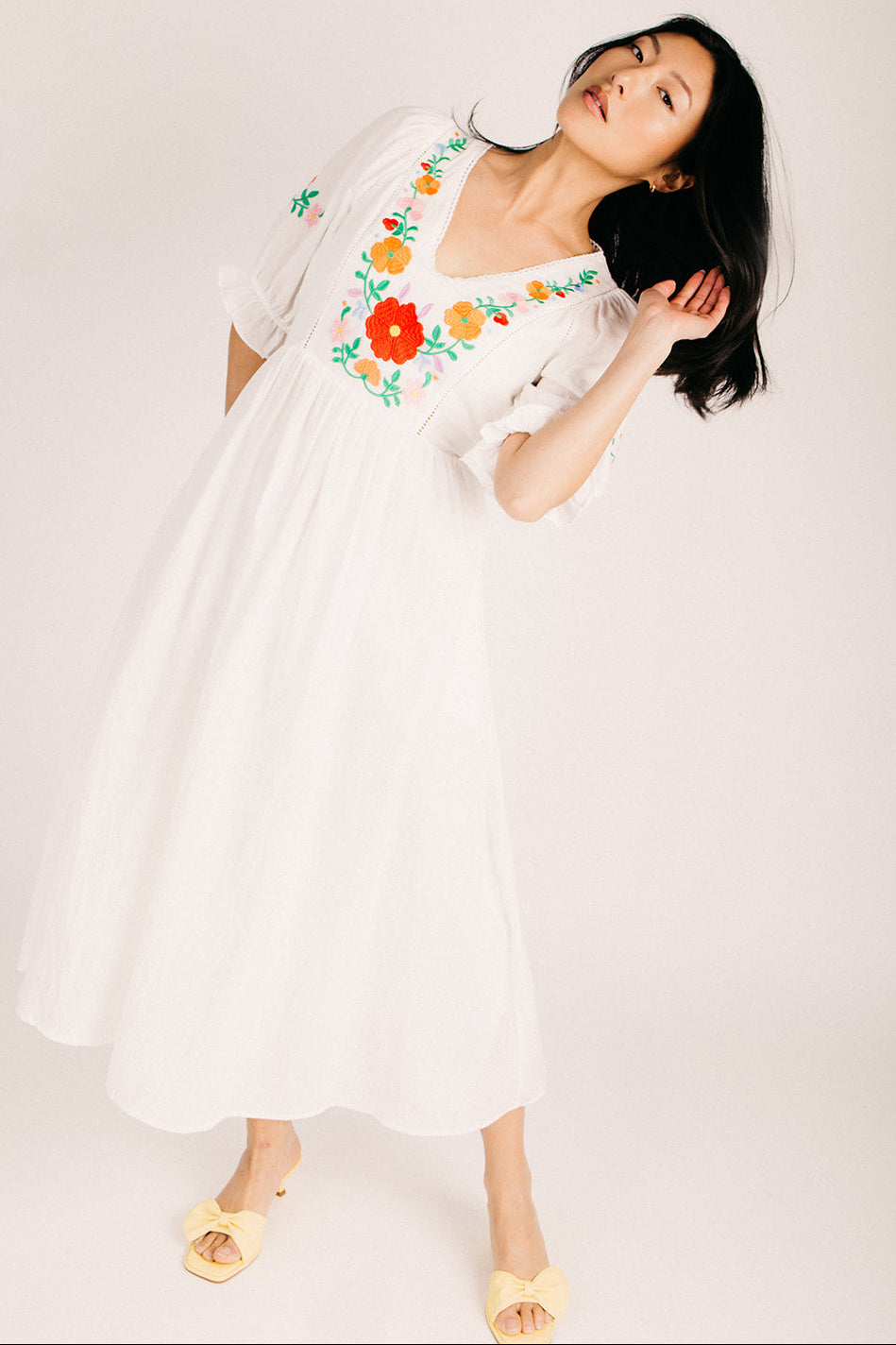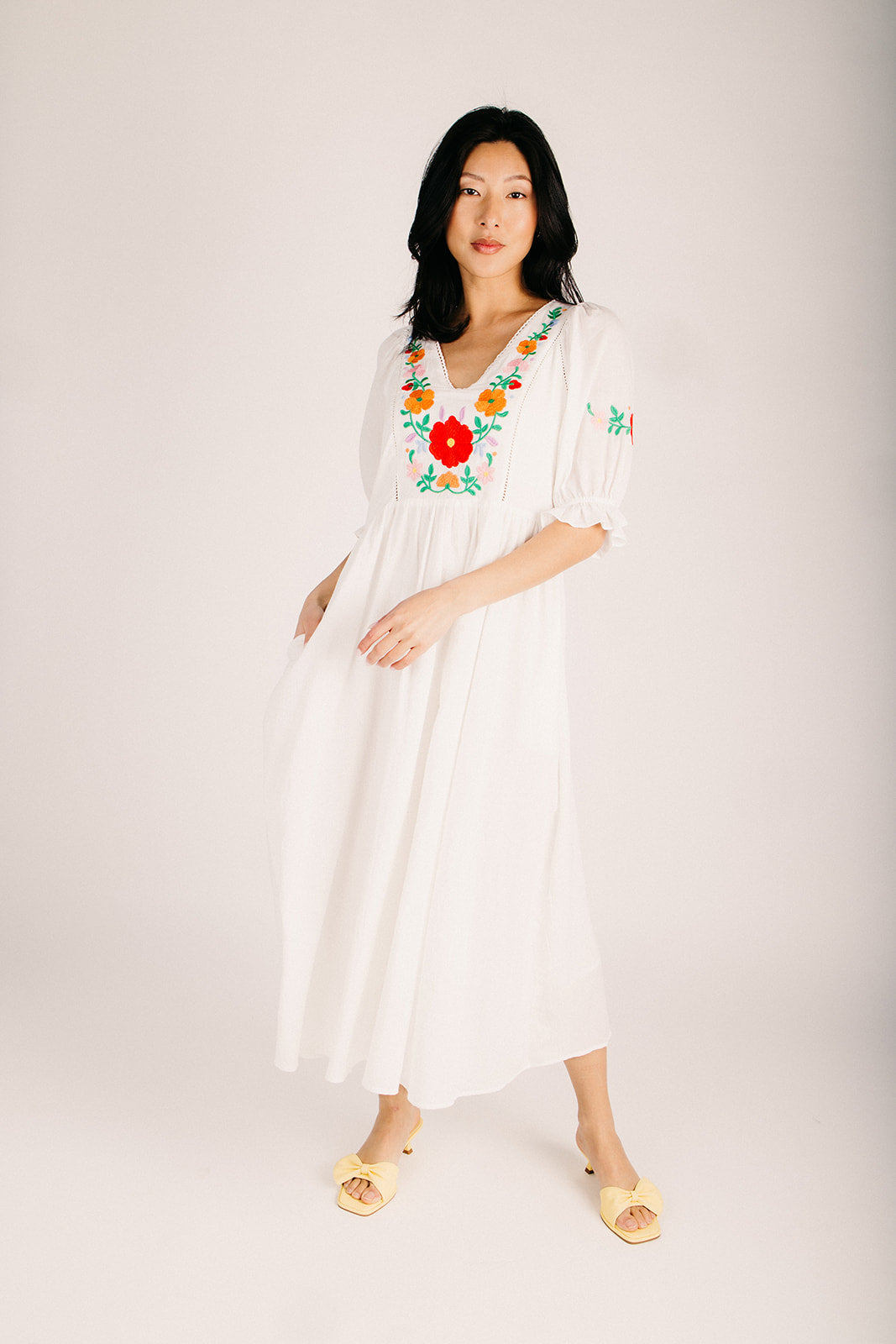 Meet your new go-to dress for those "I want to look put-together without trying too hard" moments. This off-white maxi features charming embroidered details that catch the light just right, while the relaxed fit lets you move freely through your day. Whether you're heading to brunch, a weekend getaway, or a casual celebration, this dress plays well with basically everything in your closet. Comfortable, versatile, and undeniably stylish—what's not to love?