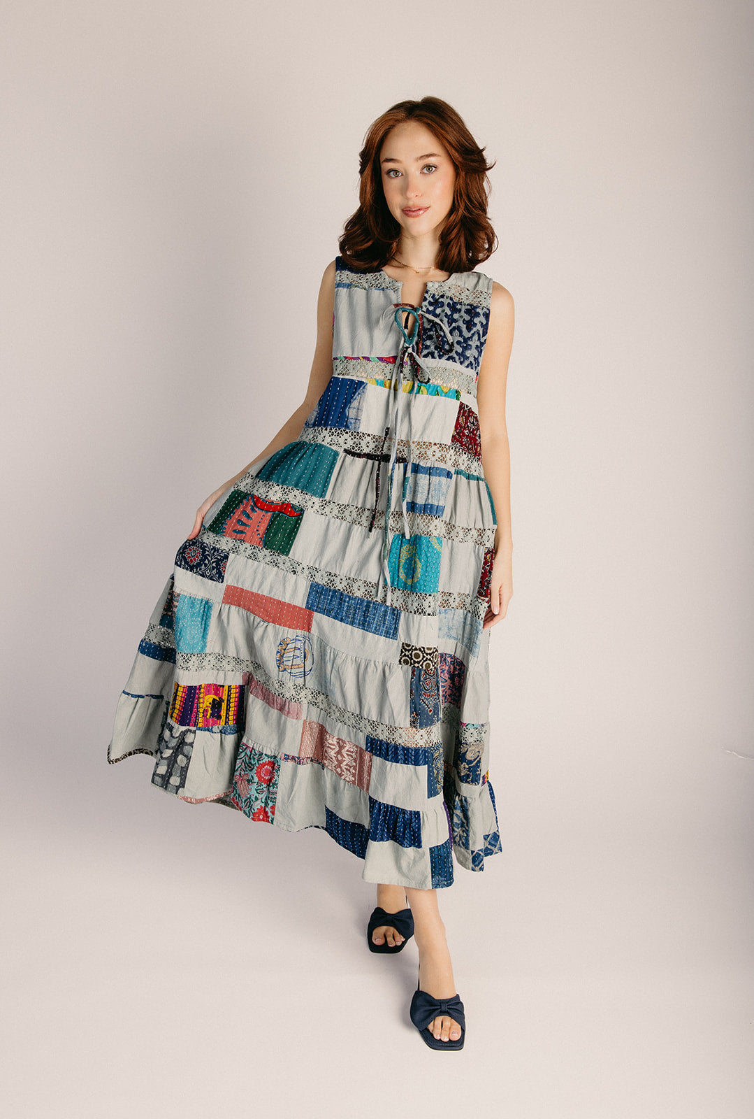 The Sophie Patterned Tank Dress in Sage Multi