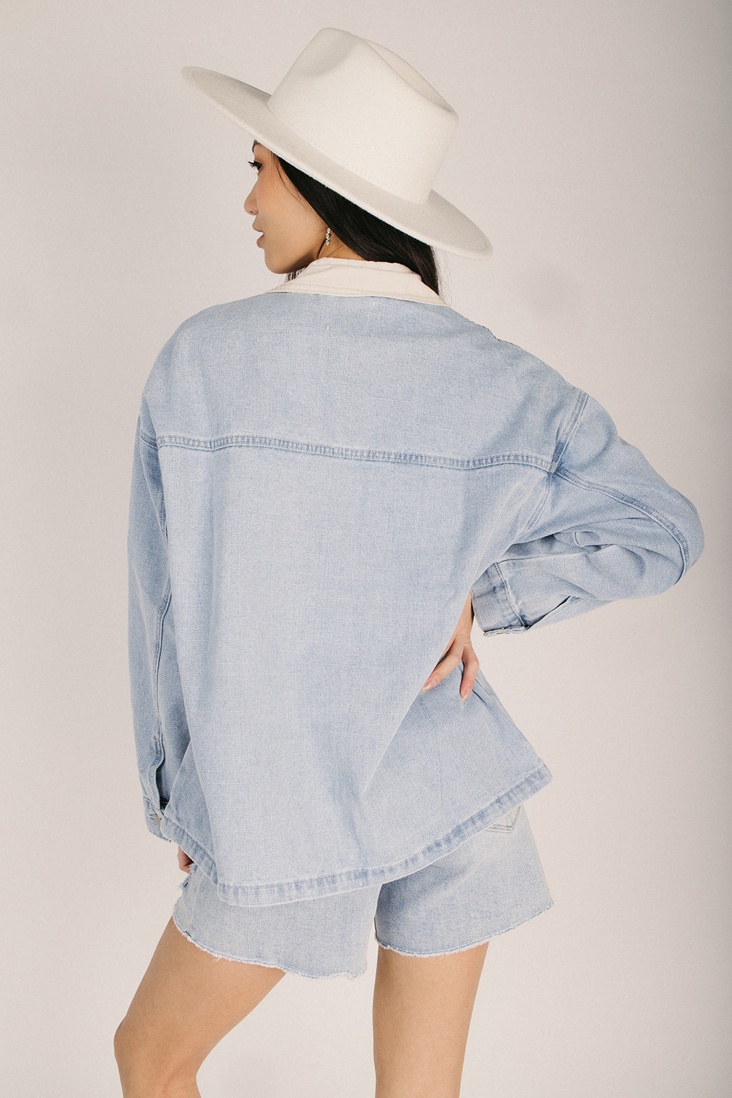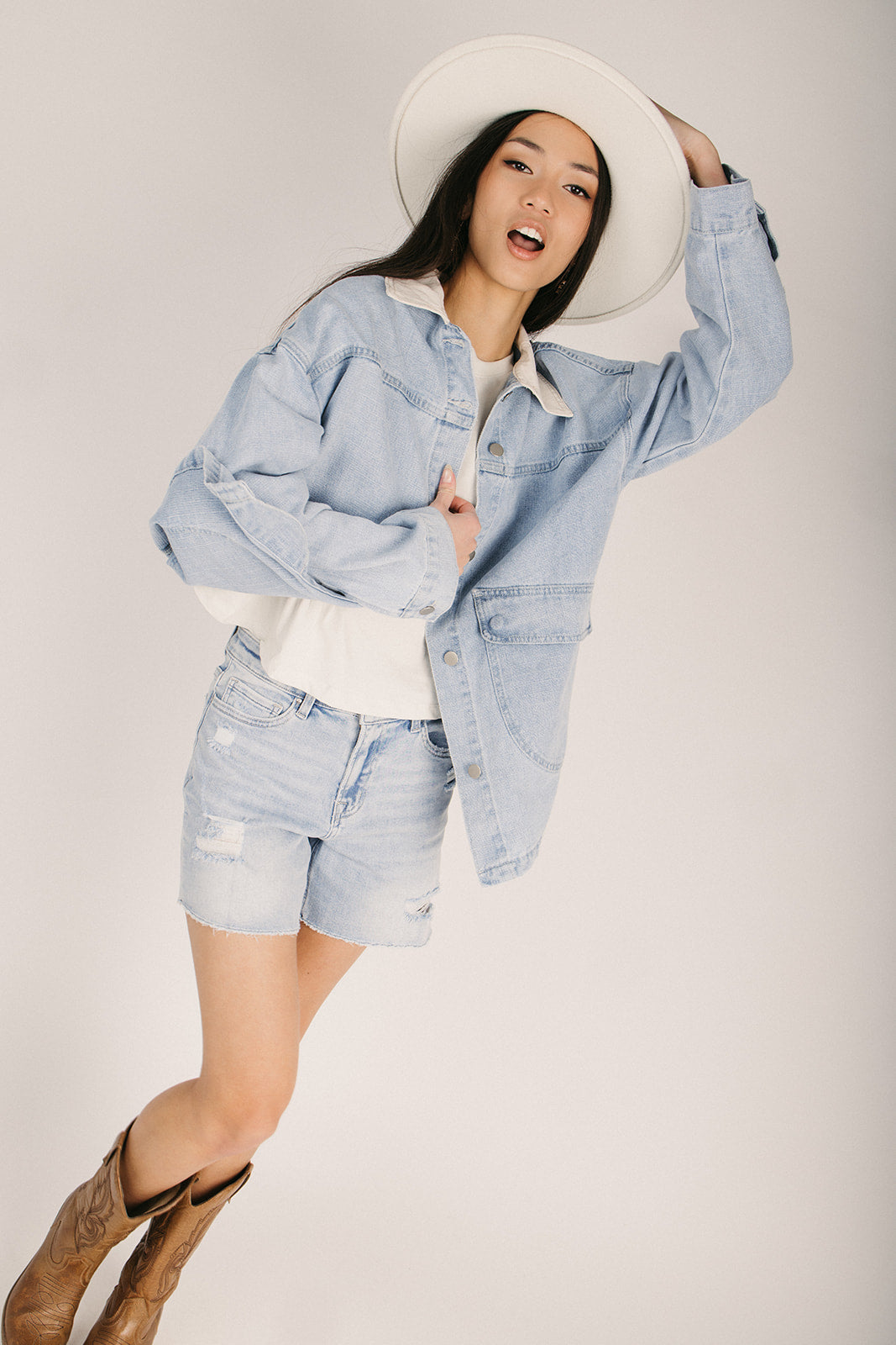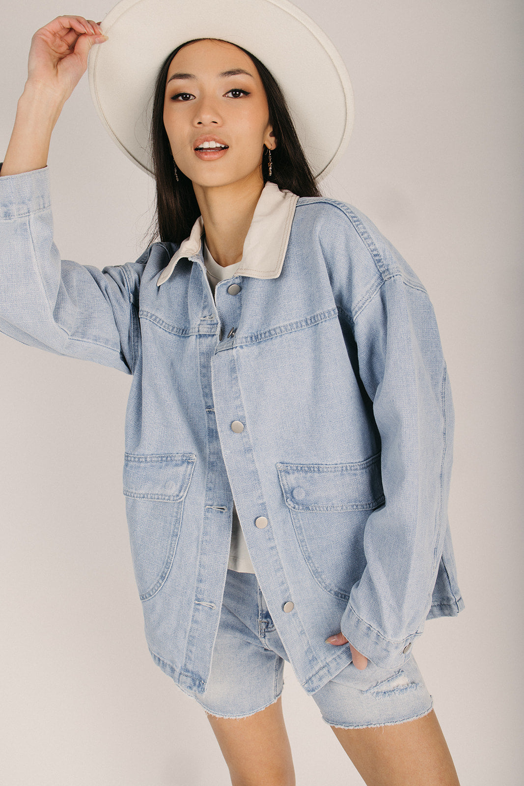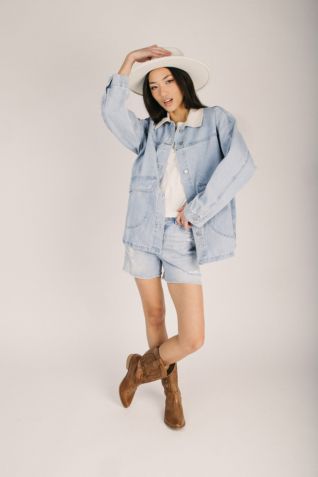 The Elizondo Contrast Collared Denim Jacket in Light Wash