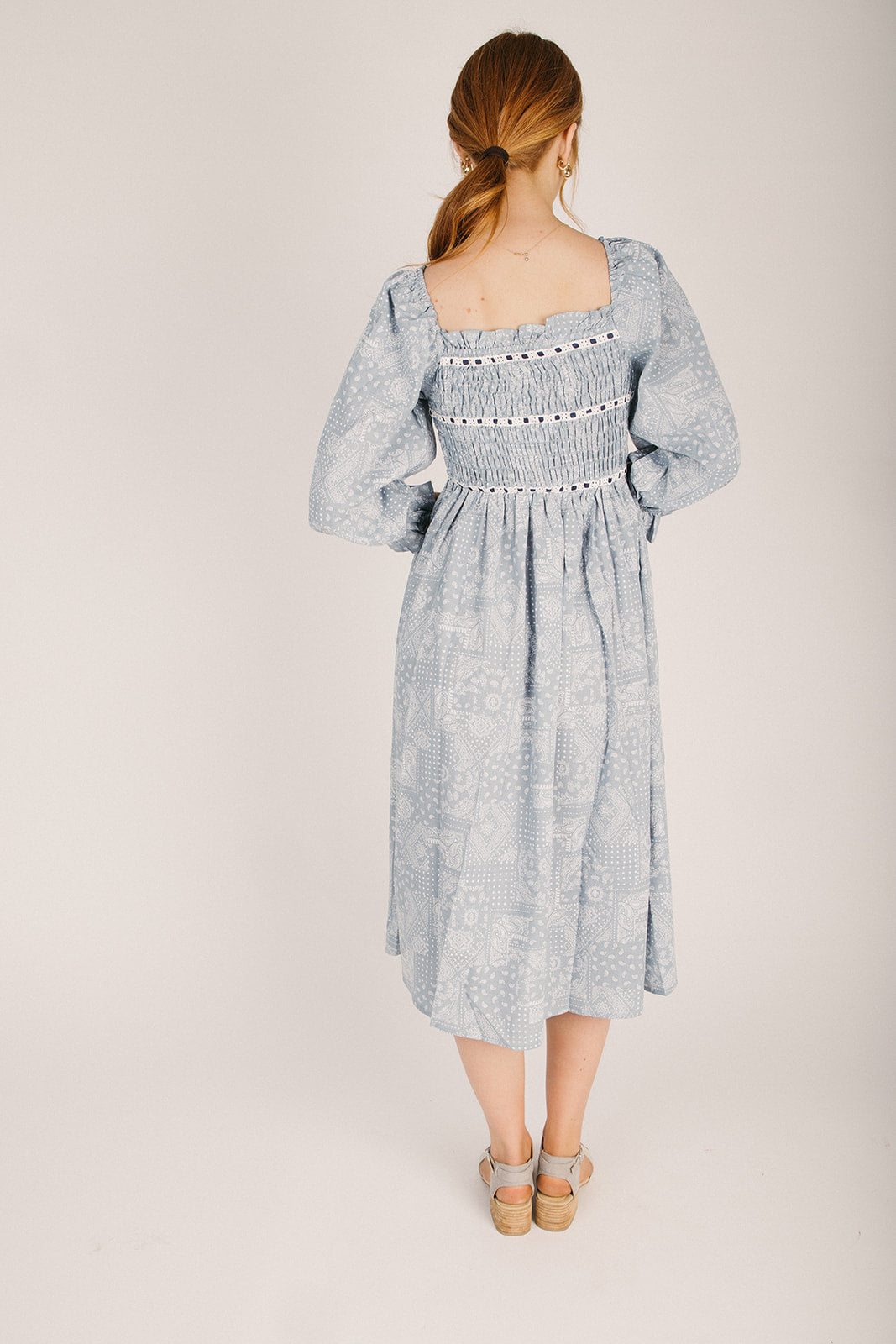 The Galbraith Lace Detail Midi Dress in Sky Blue