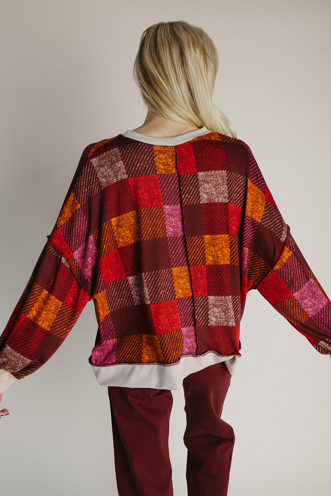The Hammonds Plaid Checkered Sweater in Burgundy + Red