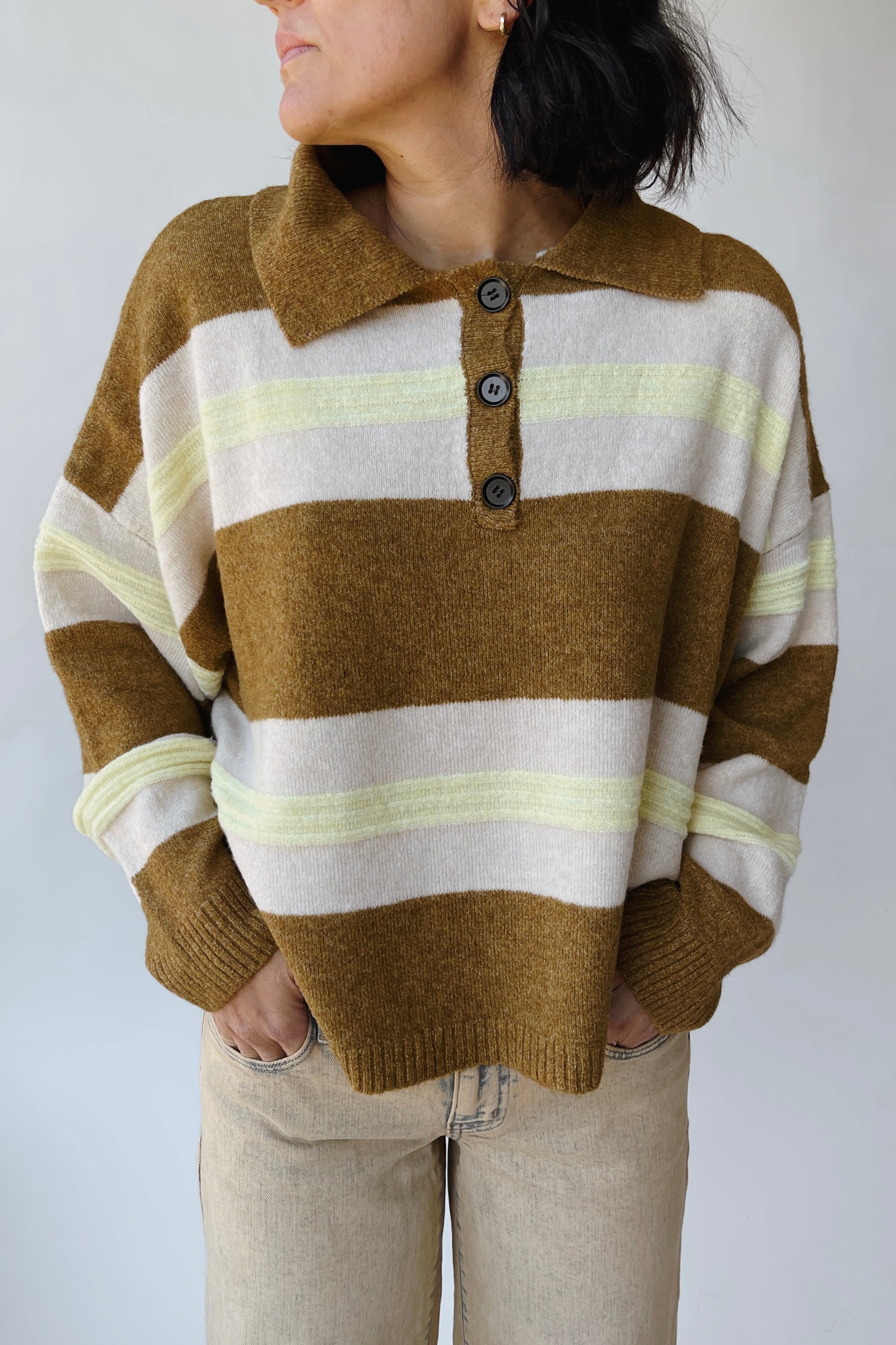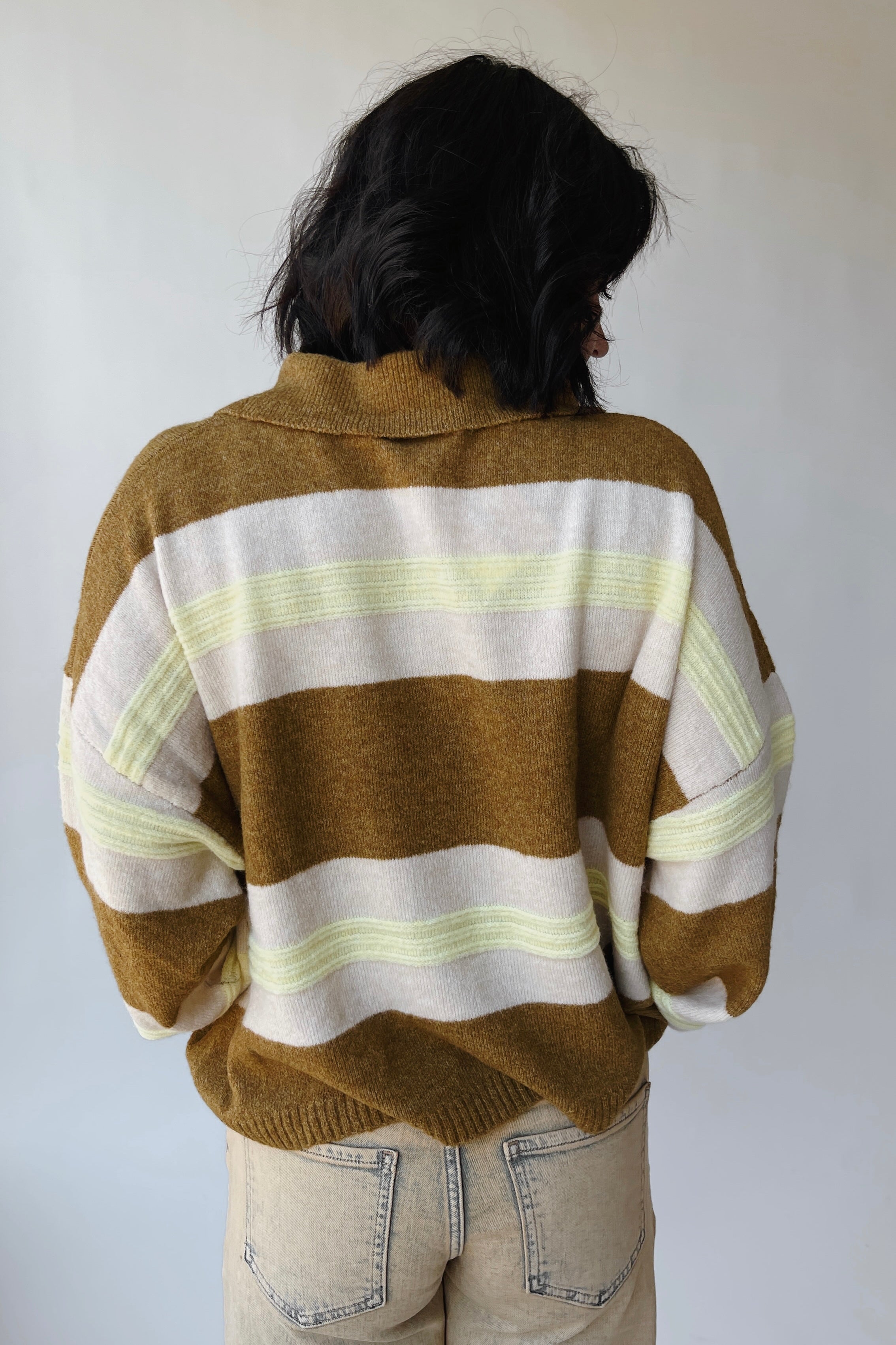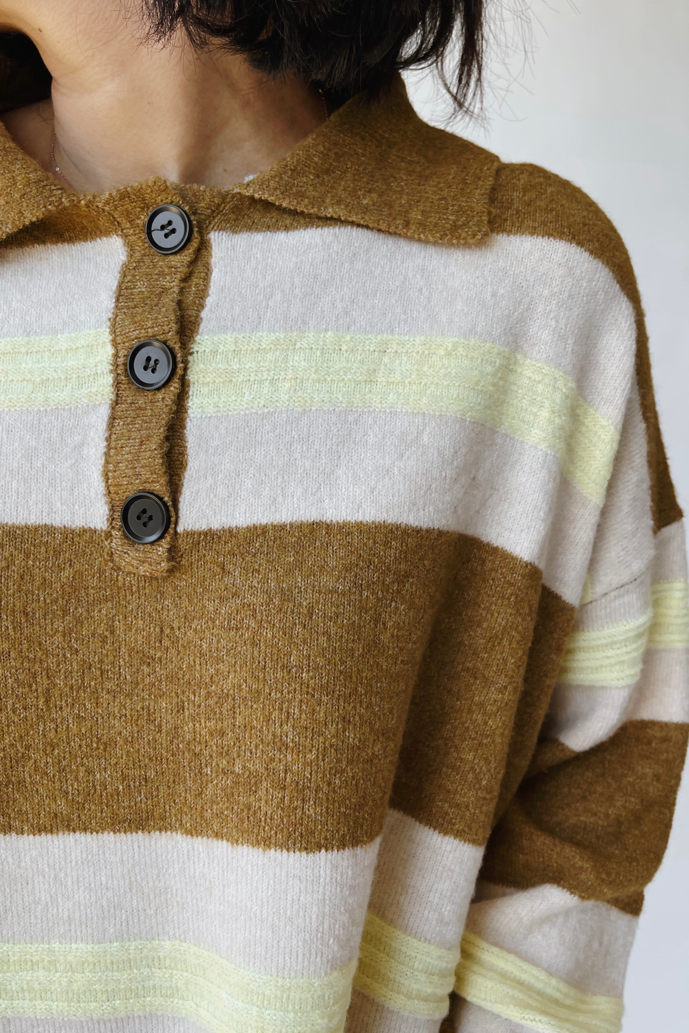 The Stephanie Striped Rugby Sweater in Bronze Yellow
