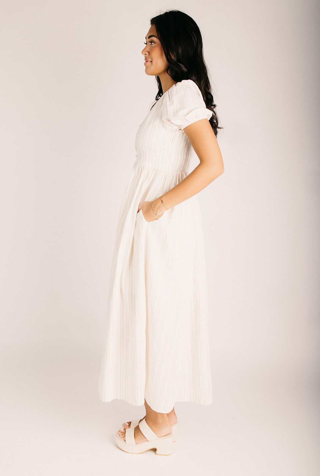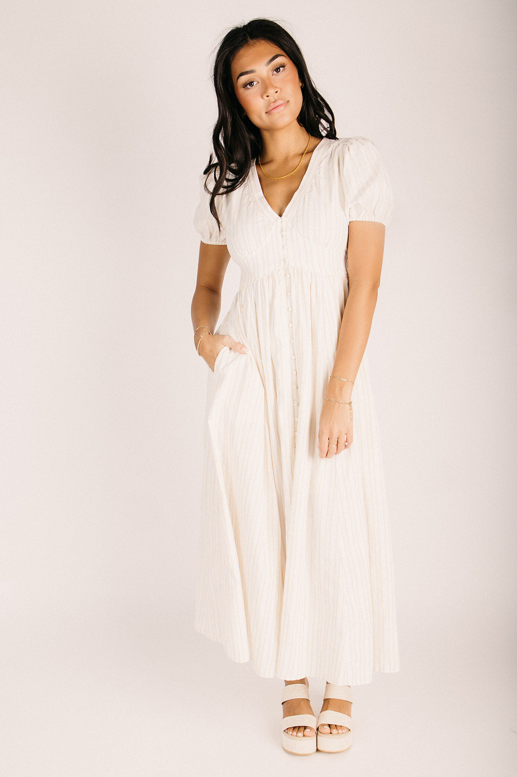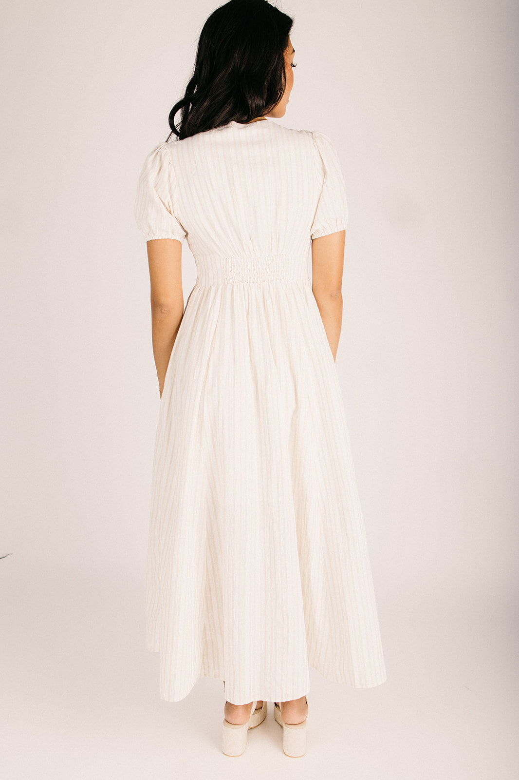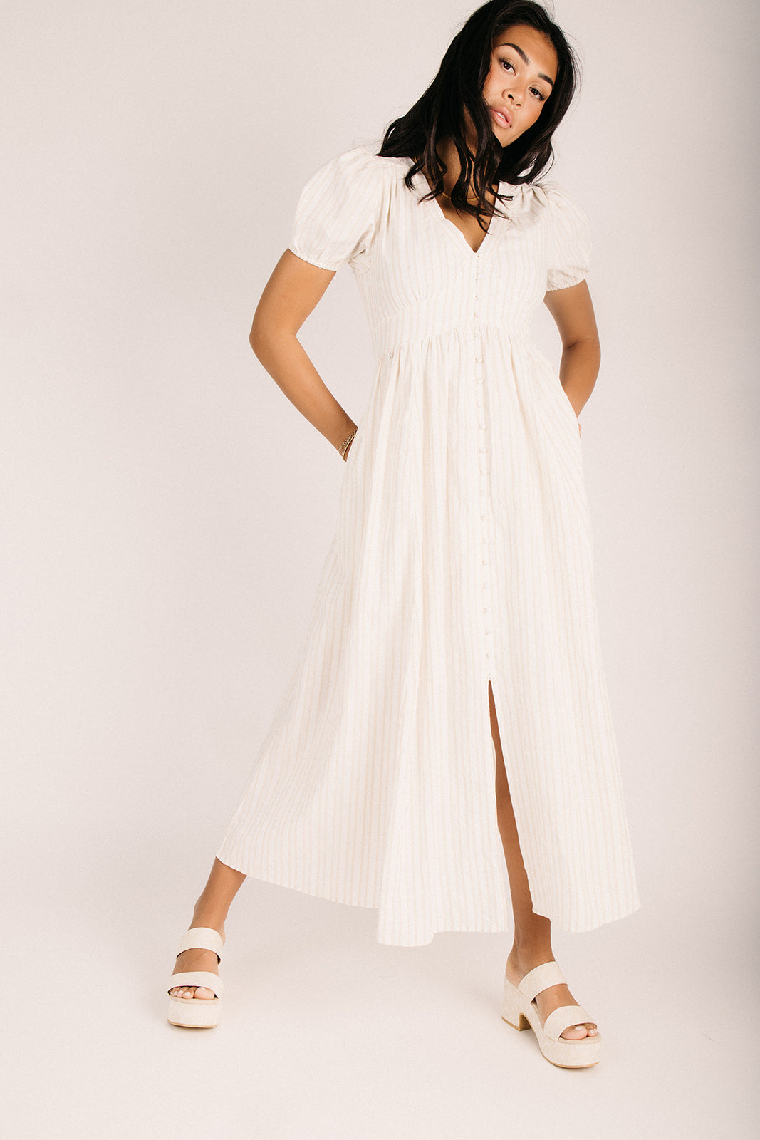 The Tawzer Striped Button-Up Maxi Dress in Natural
