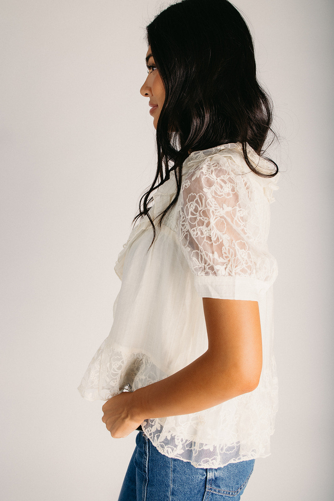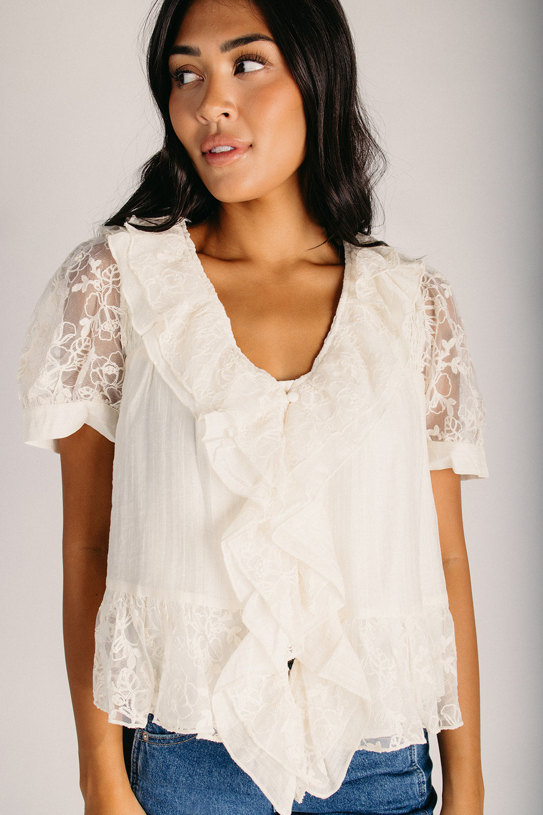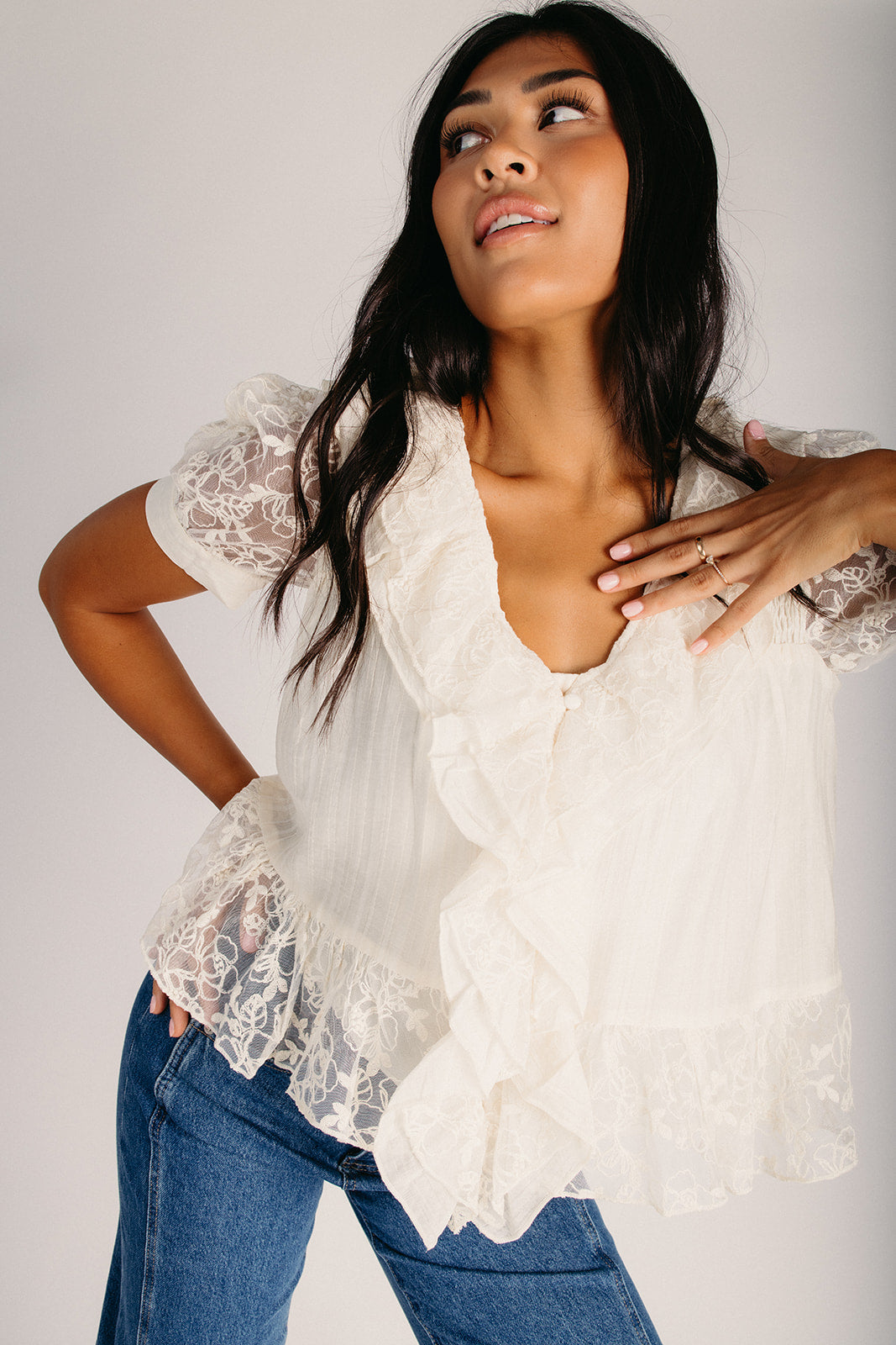 Introducing the Vardiman Lace Trim Blouse—your new go-to for effortless elegance. This cream-colored beauty features delicate lace trim that adds just the right amount of charm without trying too hard. Whether you're dressing it up for a night out or keeping it casual with your favorite jeans, this blouse works harder than you do. The relaxed fit means comfort all day long, and that lace detail? Pure sophistication. Grab yours and get ready for compliments.