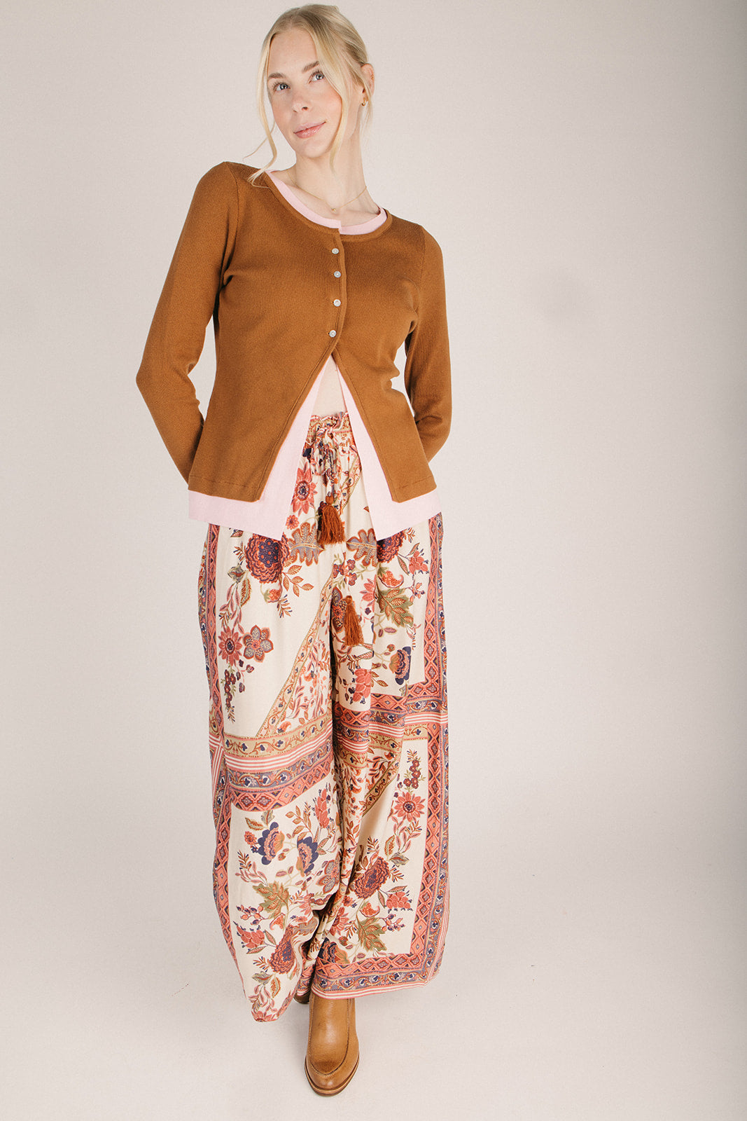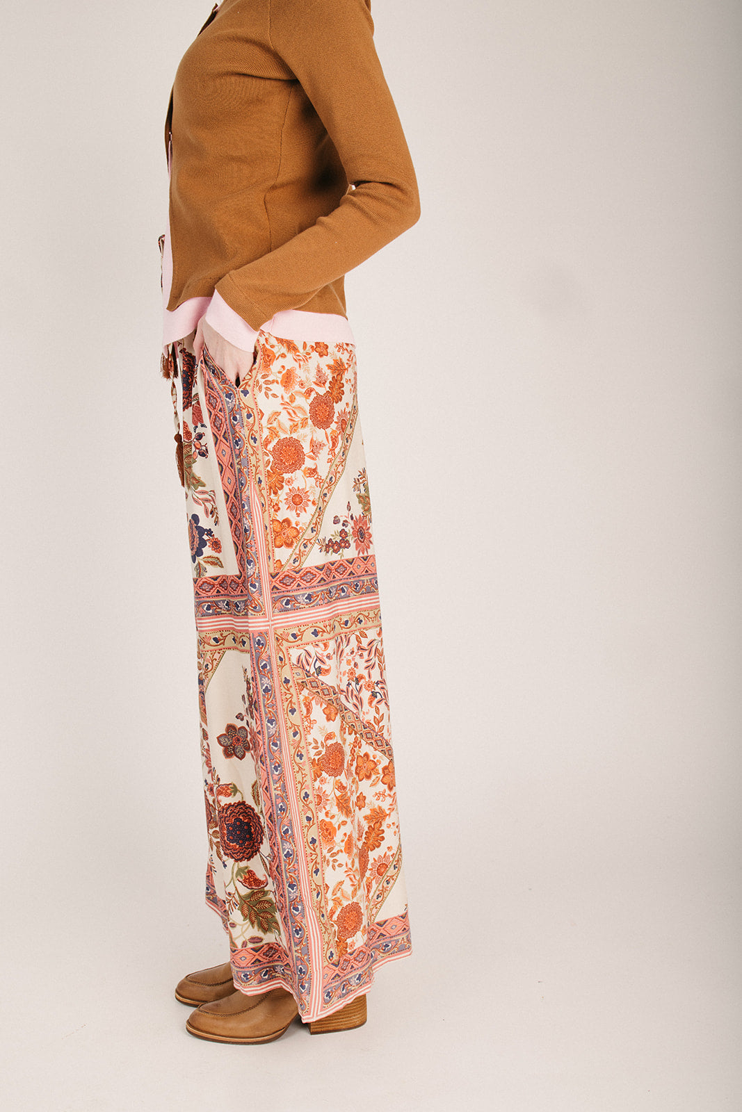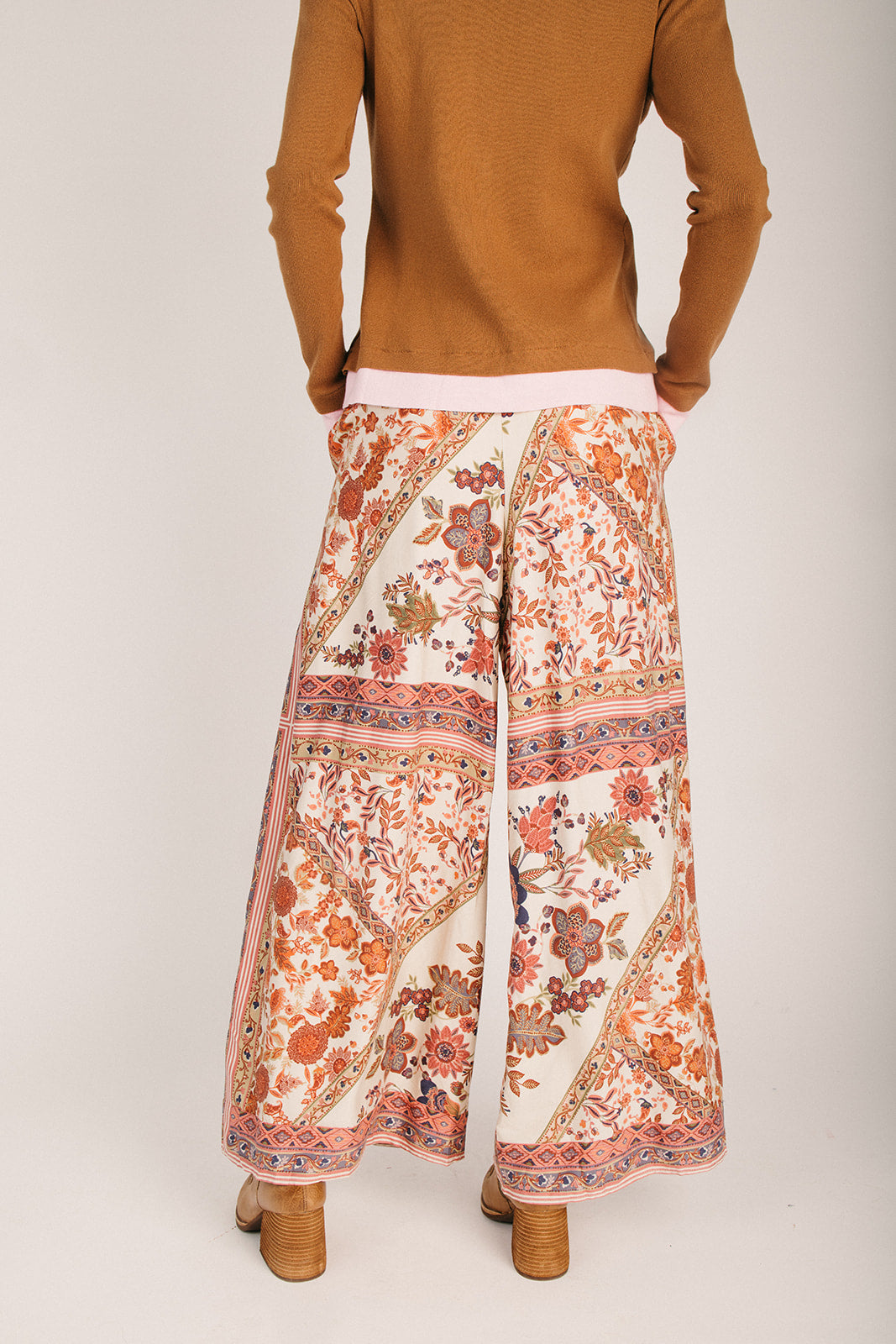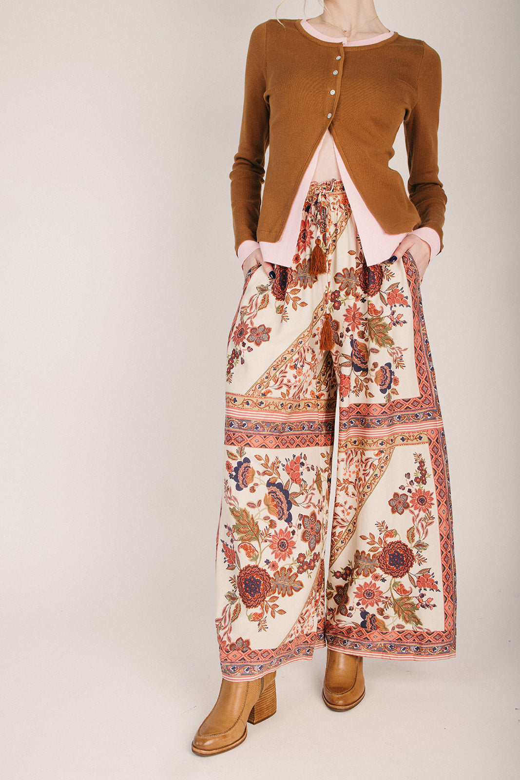 The Cadena Floral Printed Wide Leg Pant in Khaki