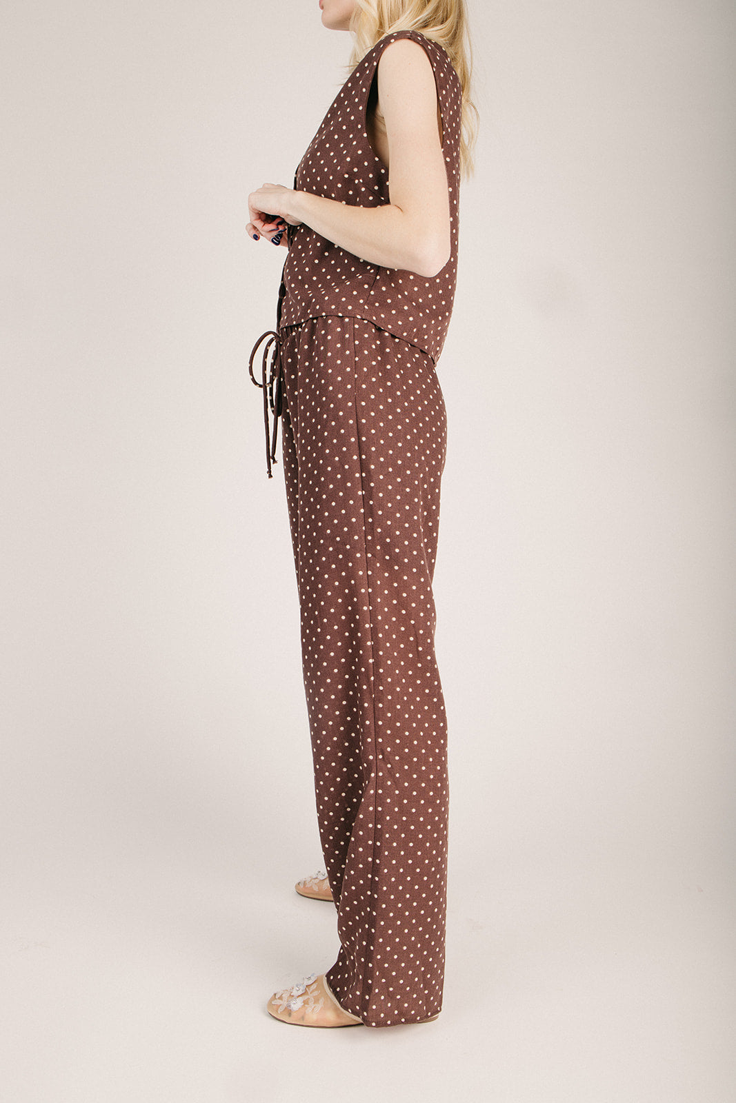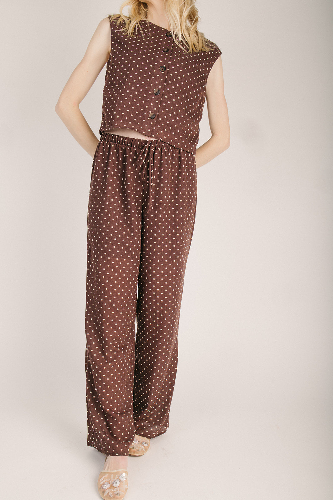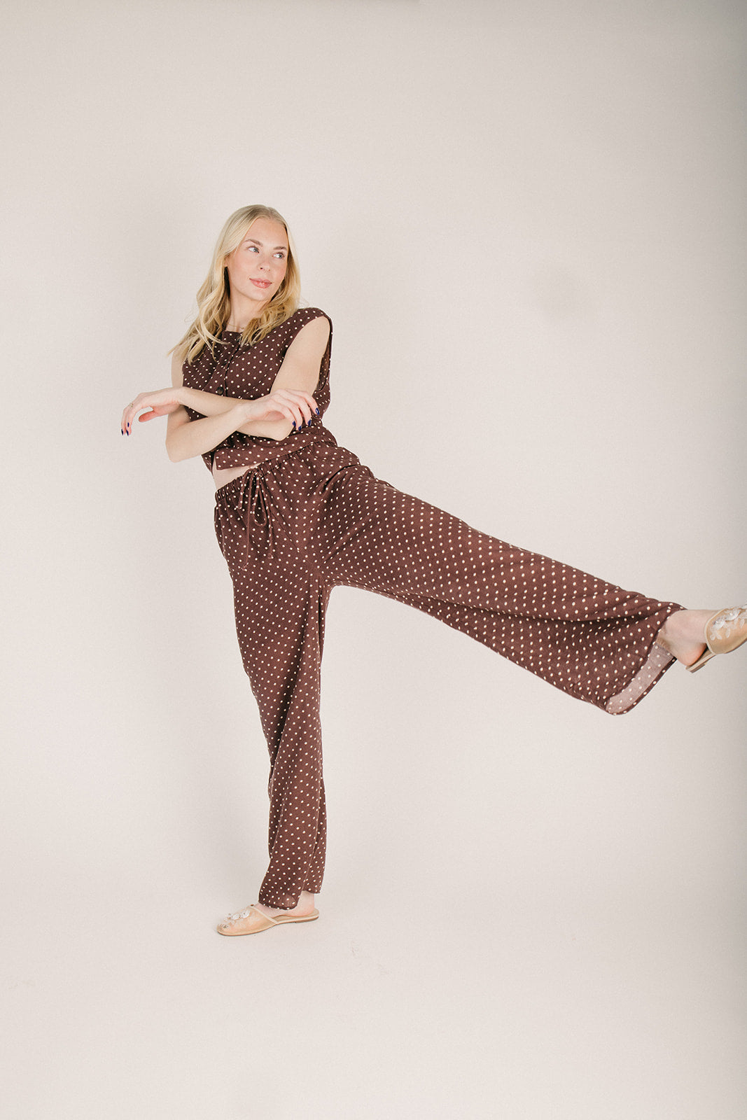 The Mosera Polka Dot Pant in Brown + Ivory