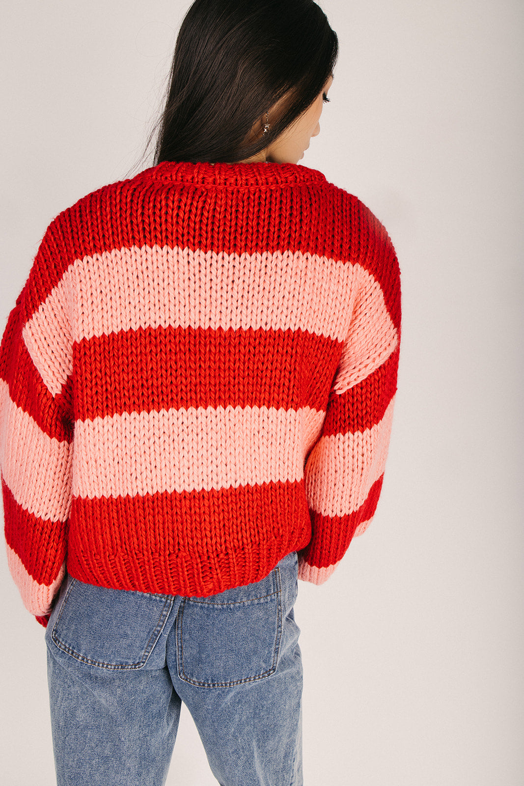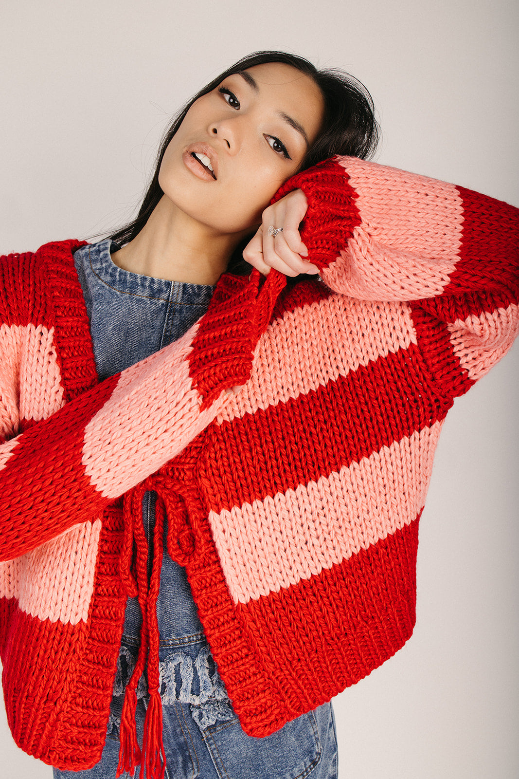 The Rallison Striped Sweater in Red + Pink is your new go-to for effortless style with a pop of personality. Featuring bold red and pink stripes, this cozy knit brings warmth and whimsy to any outfit. Perfect for layering over your favorite tee or pairing with jeans for a casual-cool vibe. Whether you're heading out for coffee or settling in for a cozy night in, this striped sweater delivers comfort without compromising on charm. A playful essential that proves stripes are always in style.