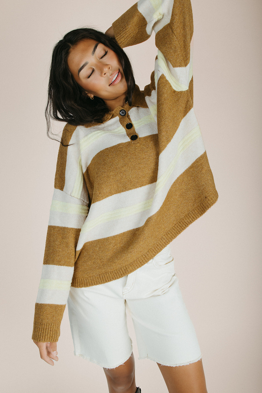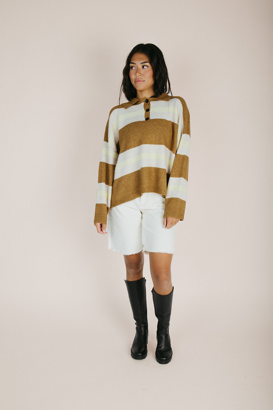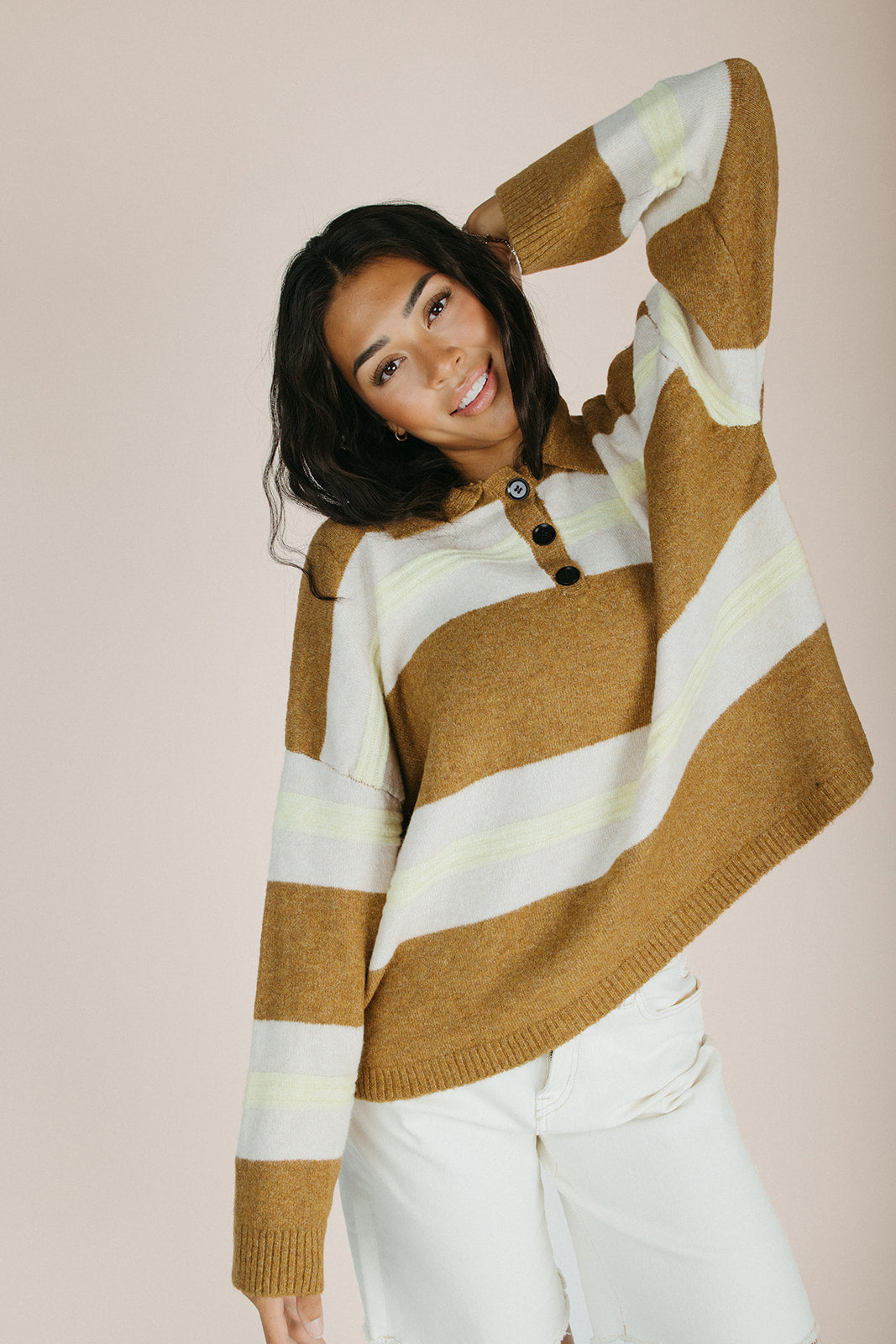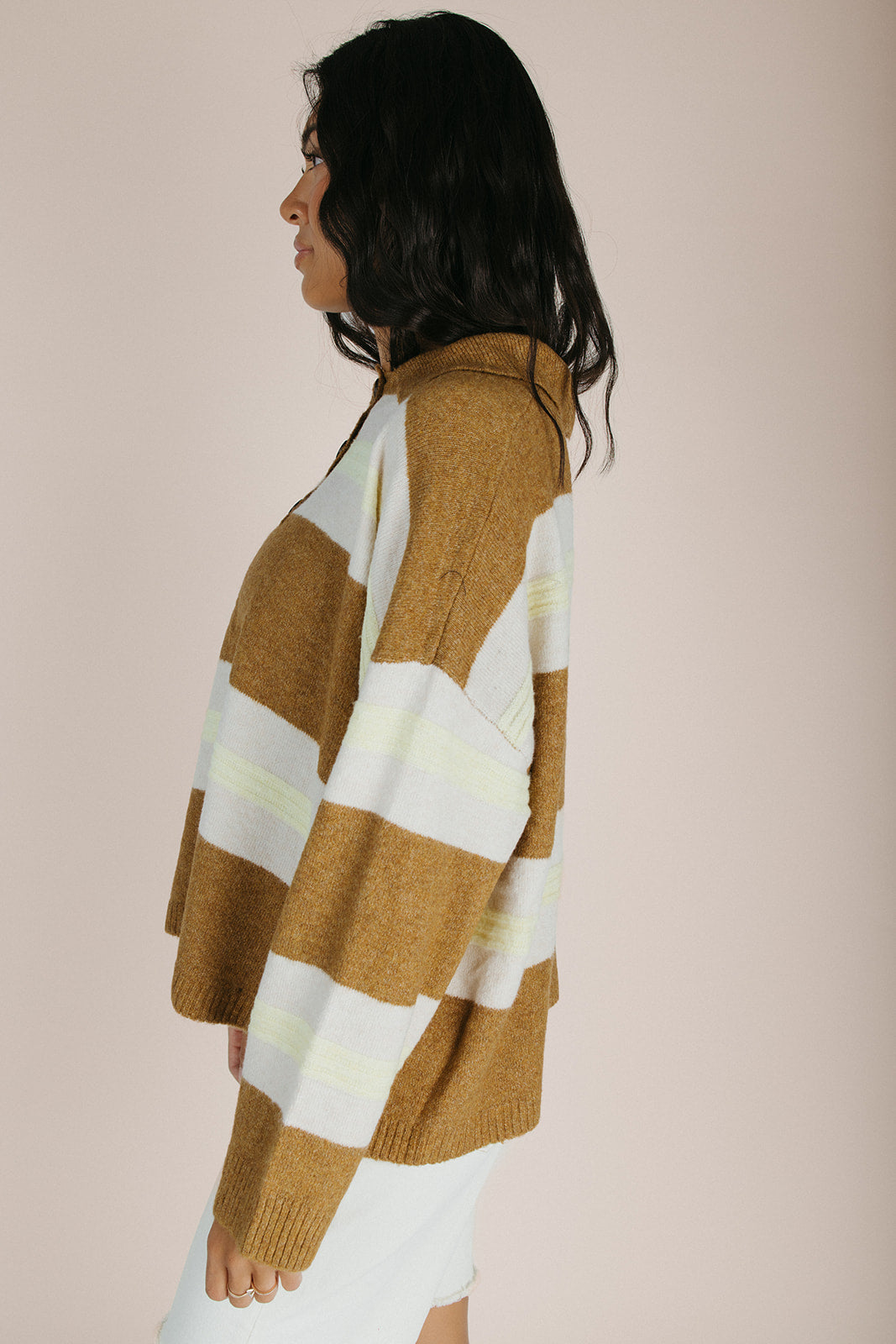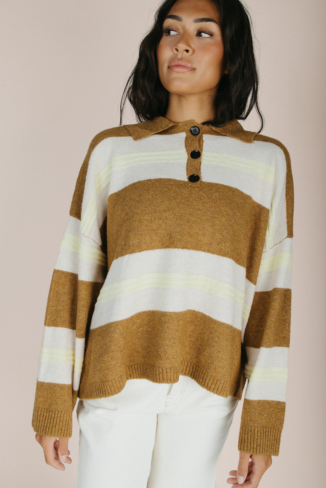 The Stephanie Striped Rugby Sweater in Bronze Yellow