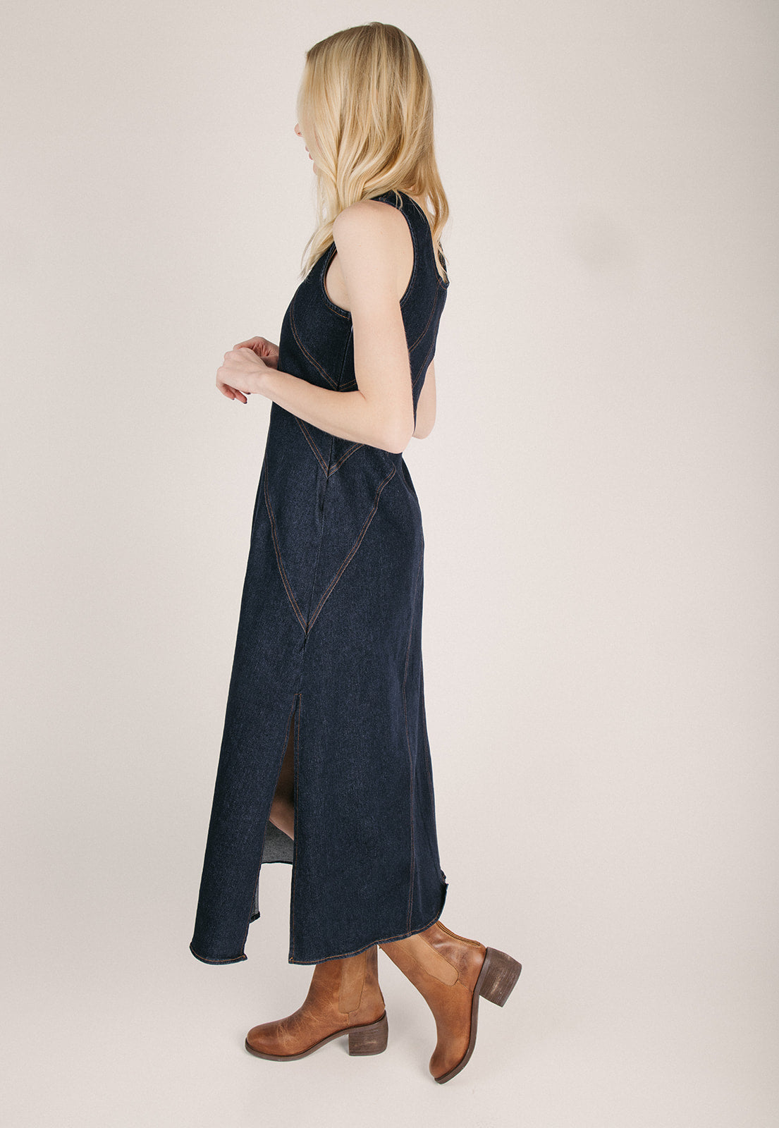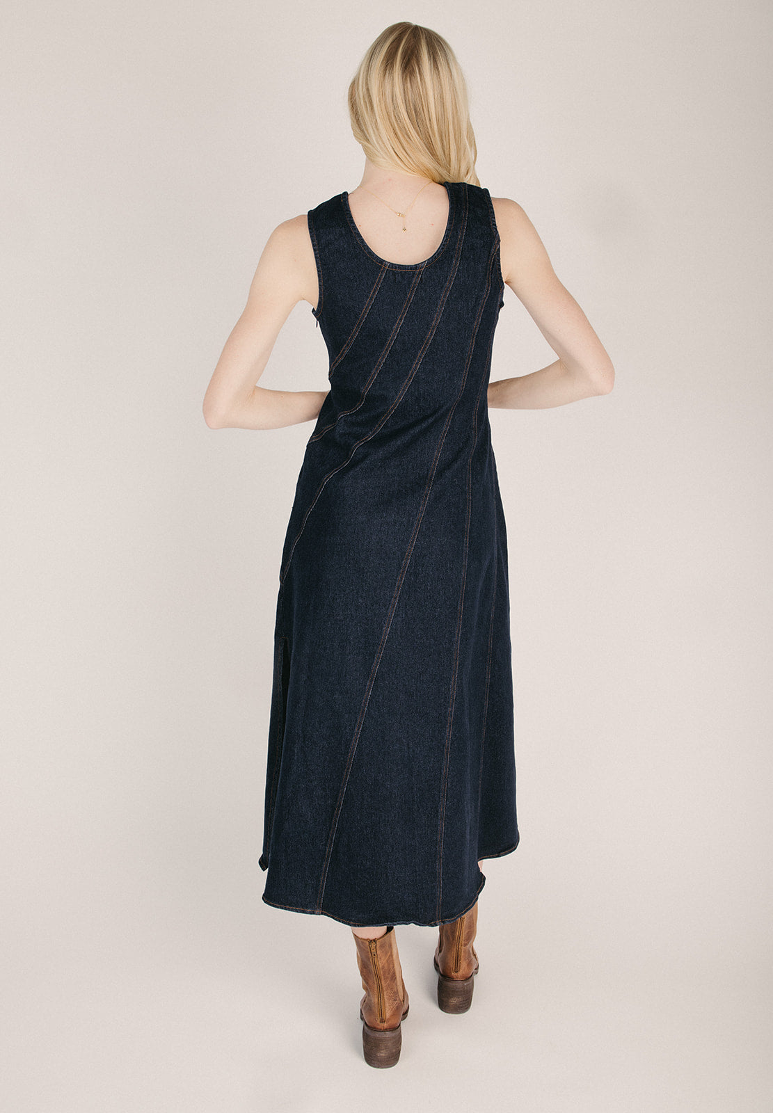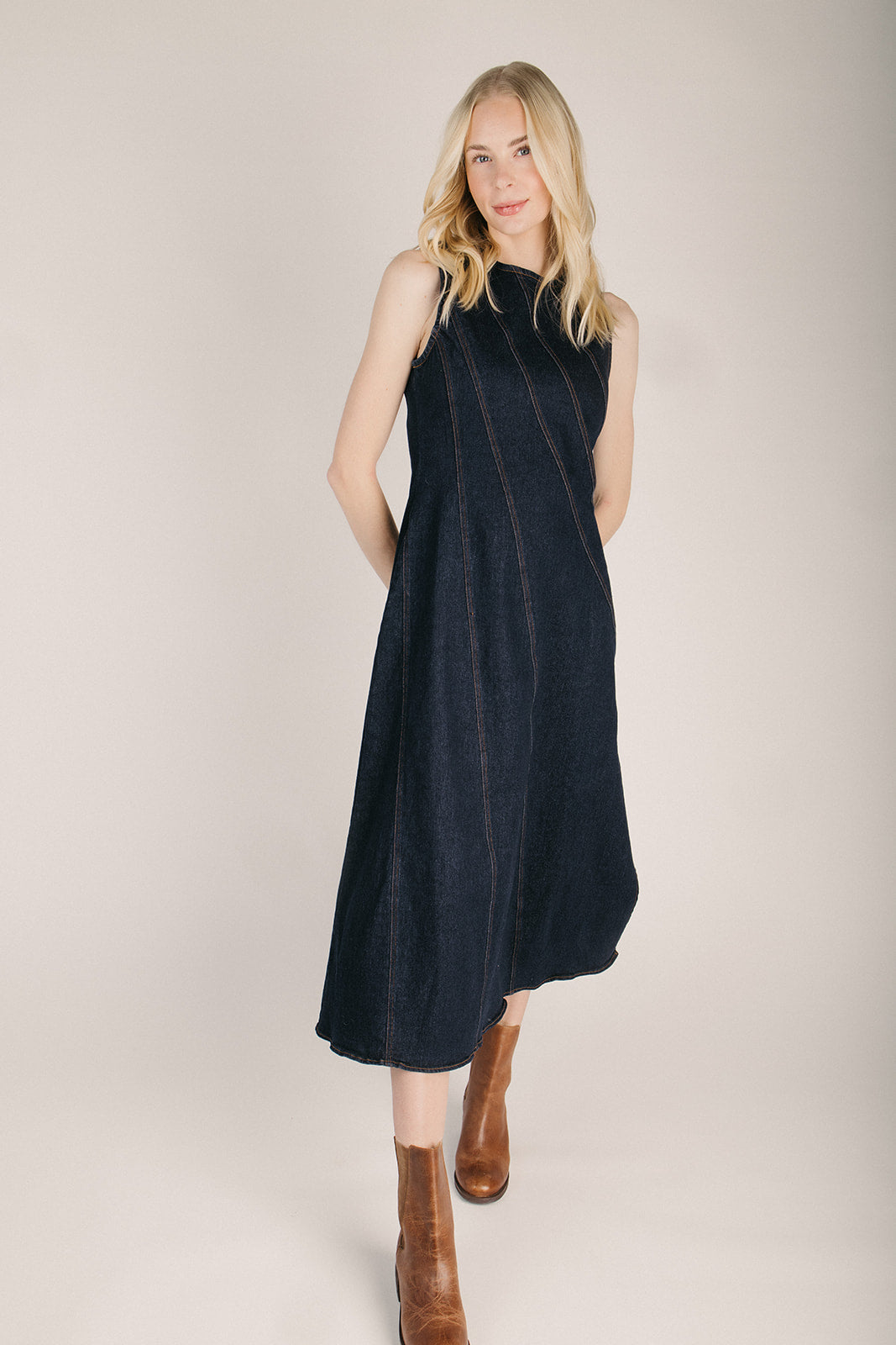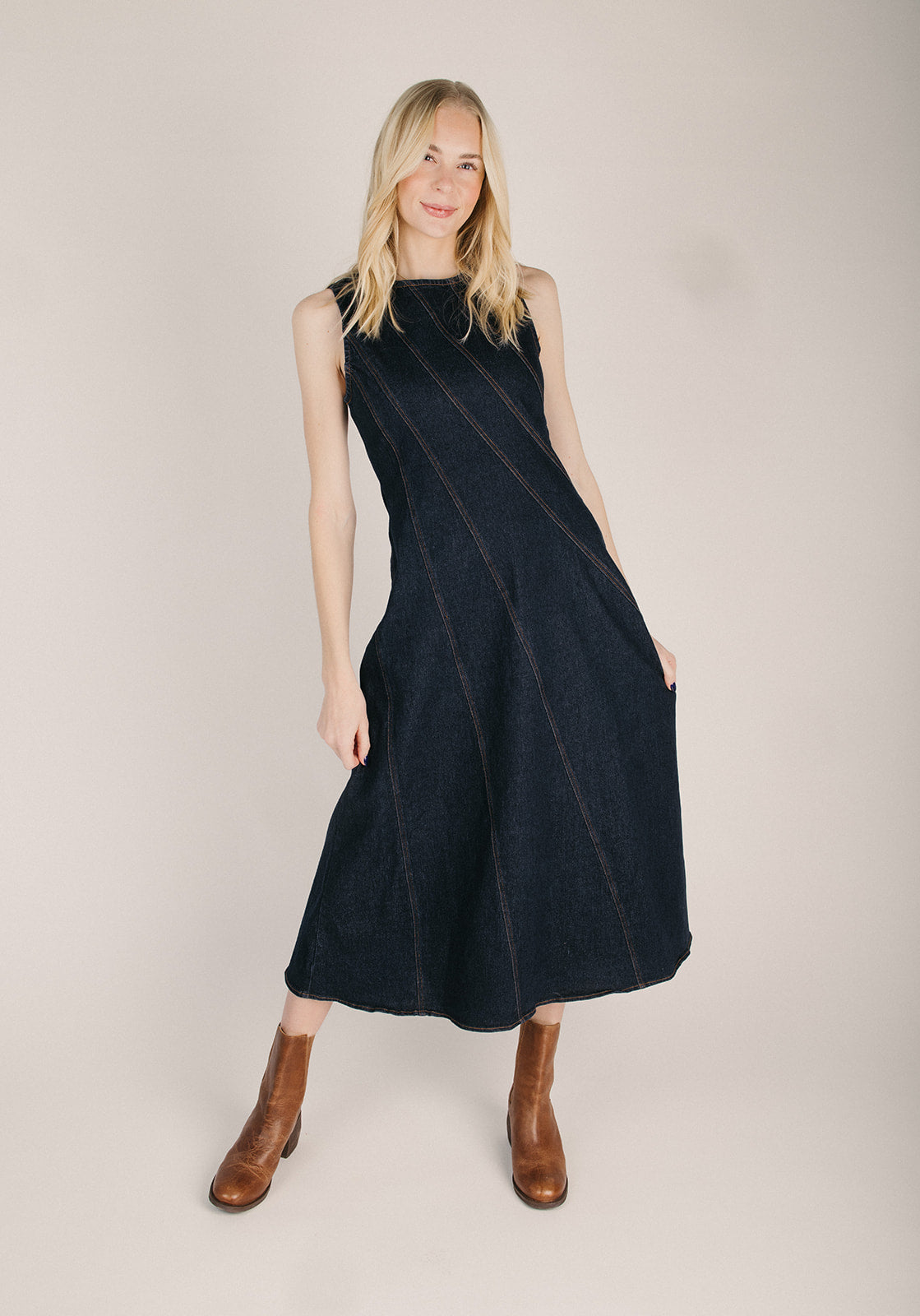 The Nash Denim Midi Dress in Dark Wash is your new go-to for effortless style. This classic denim midi features a flattering silhouette that works from brunch to date night. The rich dark wash pairs with everything in your closet, while the midi length keeps things sophisticated without trying too hard. Dress it up with heels and jewelry or keep it casual with sneakers and a tee. Versatile, timeless, and undeniably cool—this is the denim dress you'll reach for again and again.
