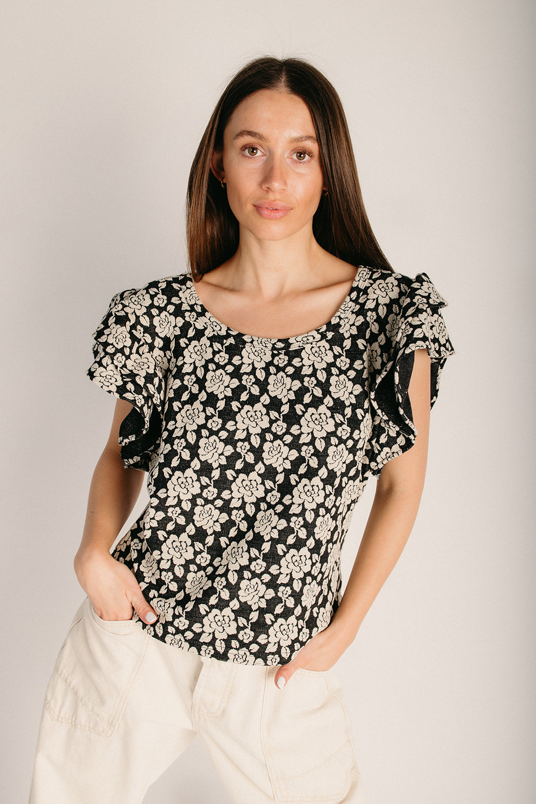 Elevate your everyday style with The Cowan Floral Jacquard Blouse, where timeless elegance meets modern edge. This striking black and grey piece features an intricate floral jacquard pattern that adds visual interest to any outfit. Whether you're dressing up for the office or keeping it casual, this versatile blouse pairs effortlessly with your favorite bottoms. A wardrobe essential that proves florals aren't just for spring.