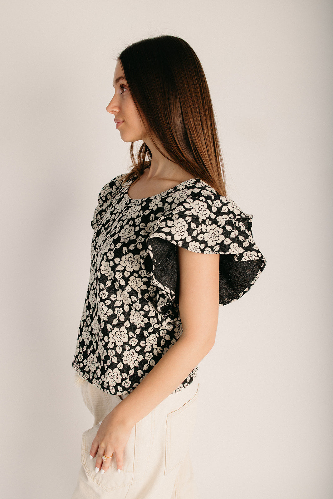 The Cowan Floral Jacquard Blouse in Black + Grey