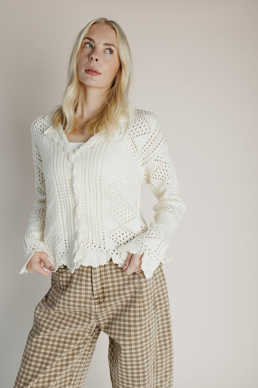 Cozy meets charm in the Abigail Knit Crochet Cardigan in Off White! This delightful layering piece wraps you in soft, breathable comfort while adding a touch of whimsical crochet detail. Perfect for breezy days or chilly evenings, it effortlessly levels up your look with a playful, vintage-inspired vibe. Slip it on and let the Abigail cardigan brighten your outfit—and your mood!