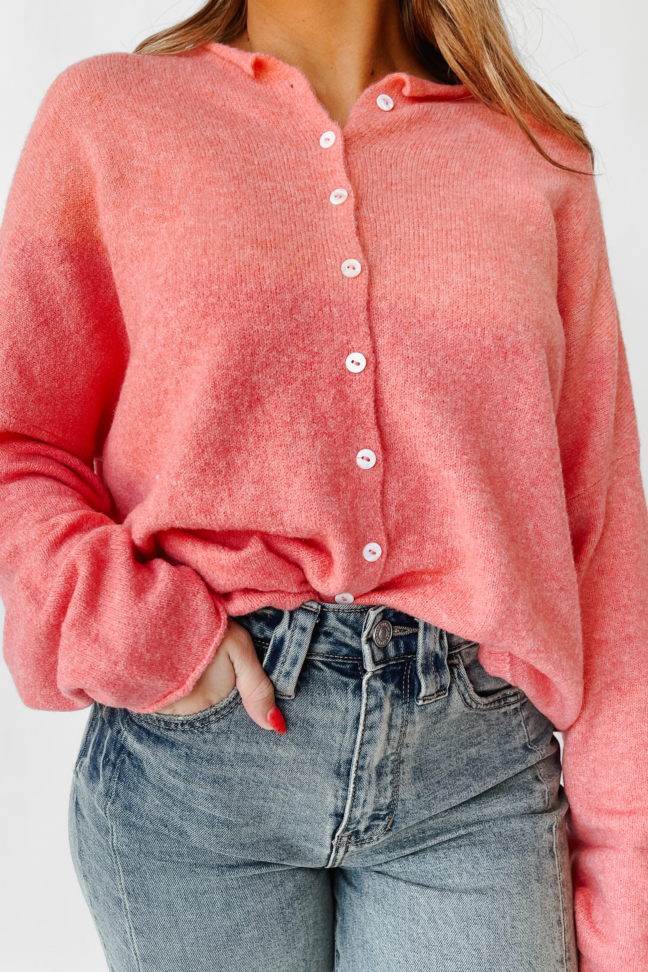 Classic + cute. This cardigan has delicate buttons down the front. It can be worn as a blouse or layered. It is a versatile neutral color with a cropped length.