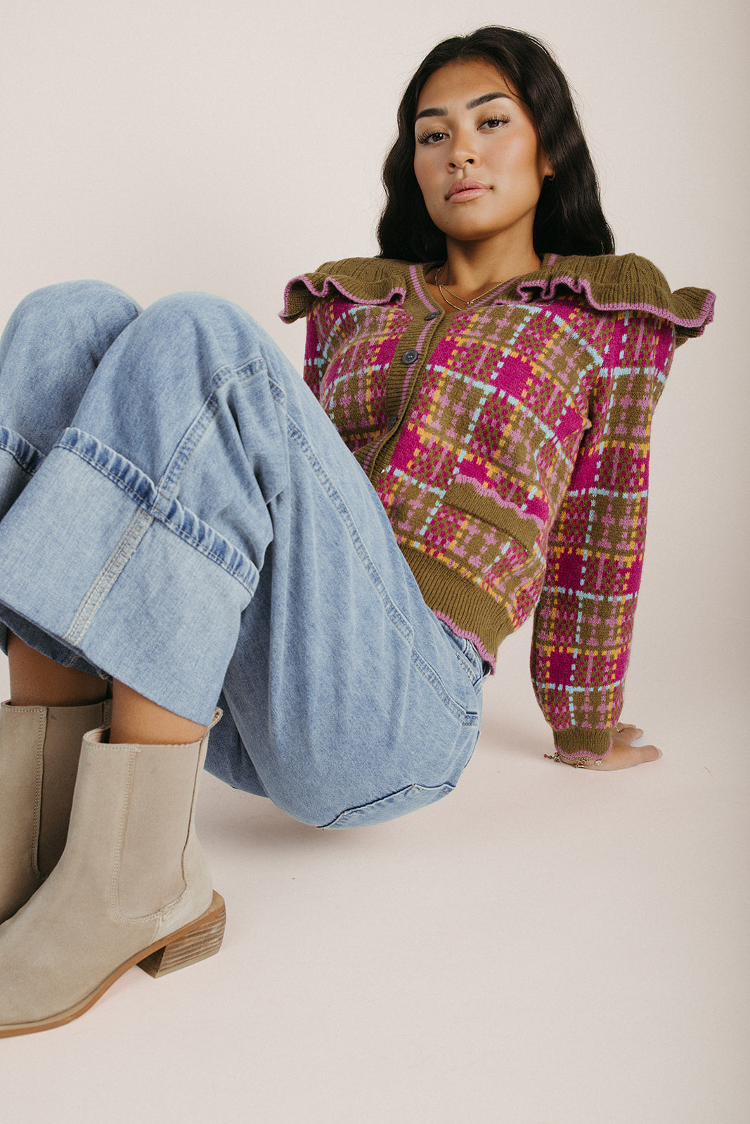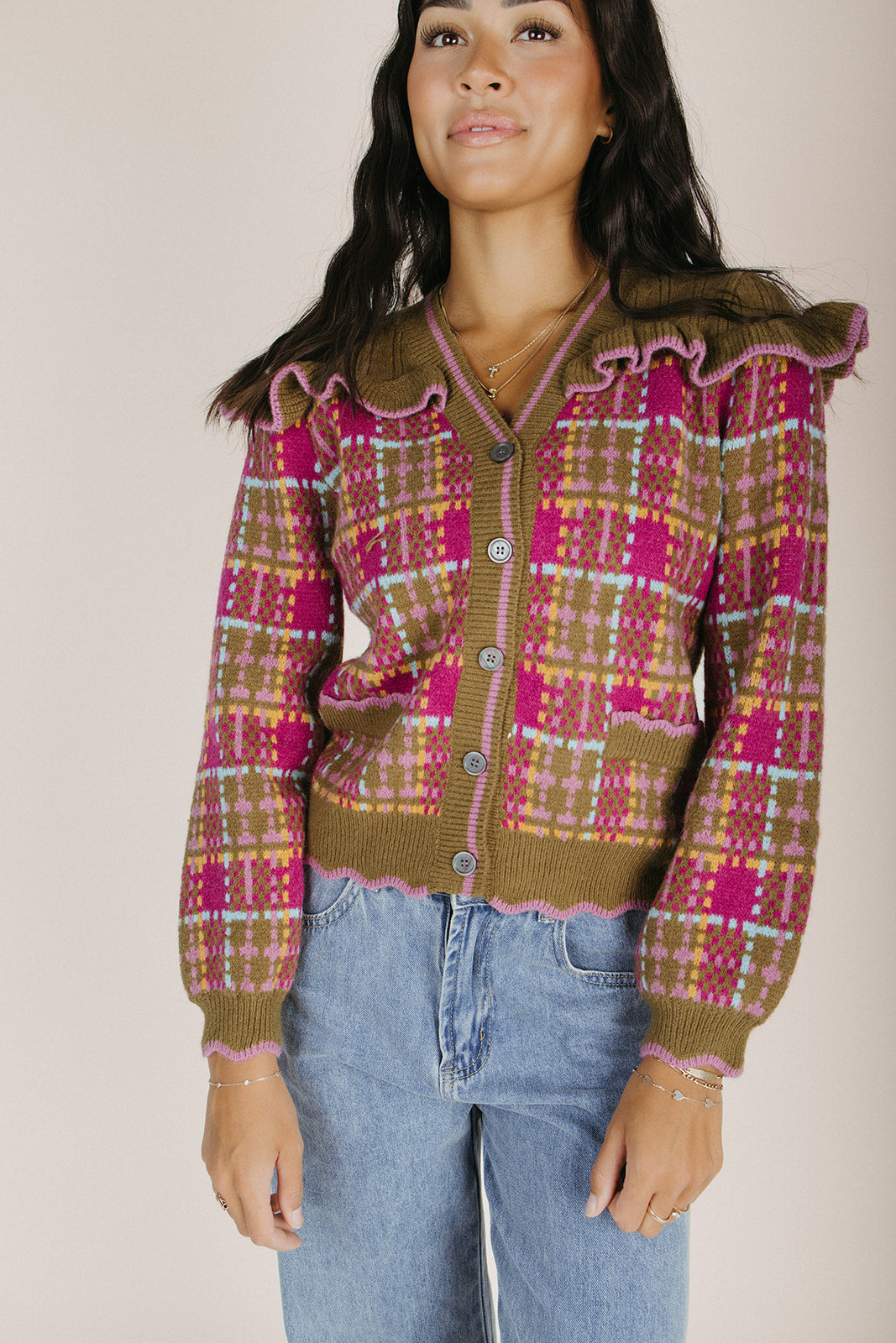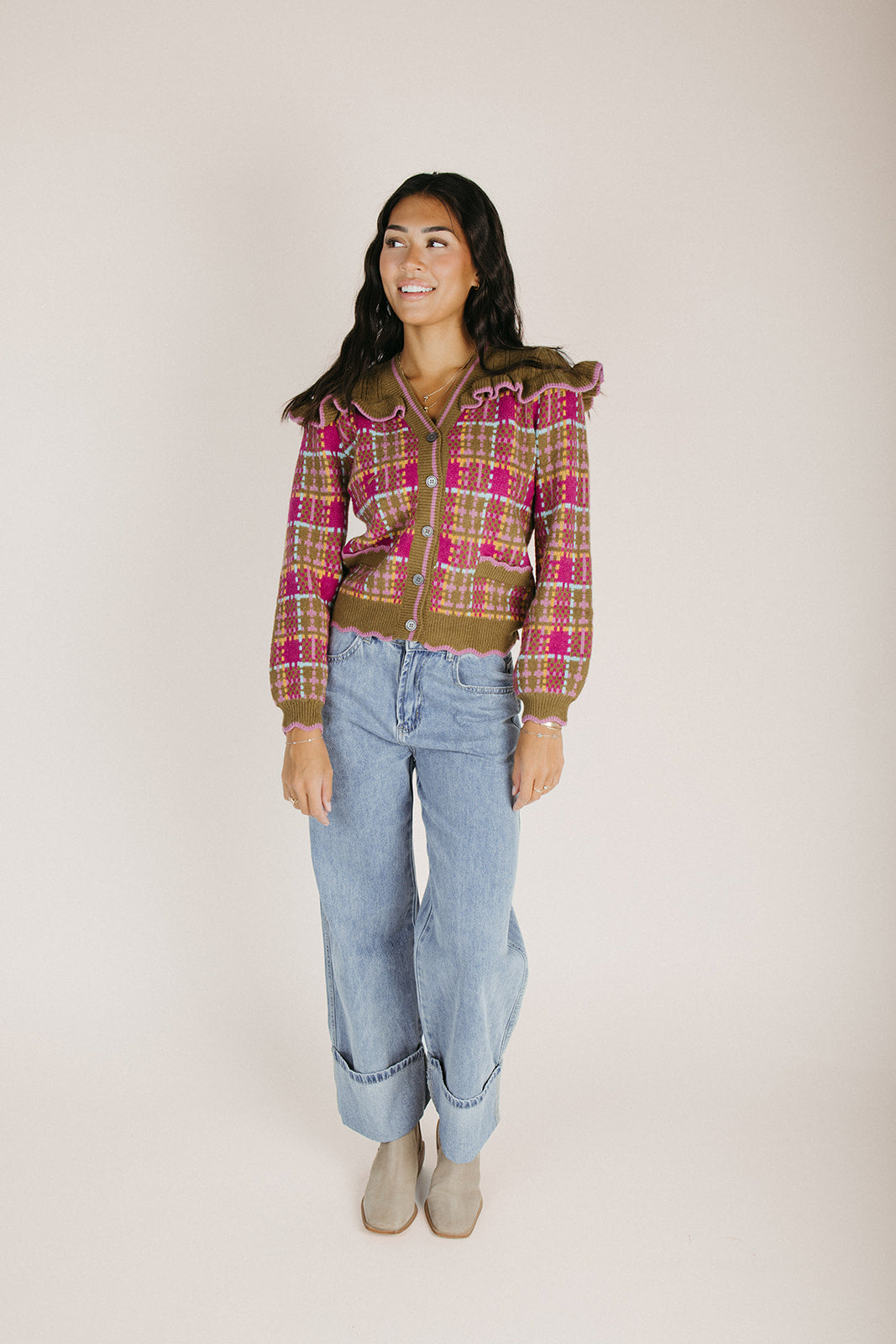 Wrap yourself in cozy plaid perfection with The Vincent Cardigan. This charming olive multi design brings warmth and vintage-inspired style to any outfit—layer it over your favorite tee or dress it up for a polished look. Soft, comfortable, and endlessly versatile, it's the cardigan that does it all. Perfect for those moments when you need an extra hug (the fashion kind).